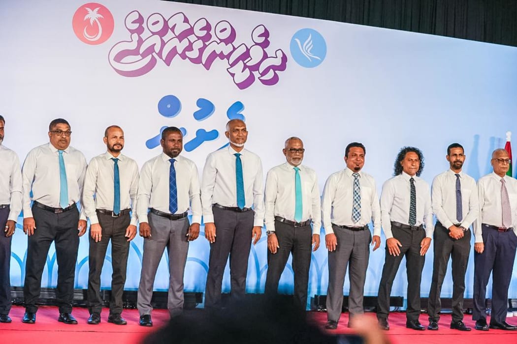 ޕީއެންސީއަށް ގުޅުނު މަޖިލިސް މެންބަރުންނާއެކު، ރައީސް ޑރ. މުހައްމަދު މުއިއްޒު އާއި އިސް ވަޒީރު އަބްދުއްރަހީމް: މަޖިލީހުގެ ރައީސް އަދި ނައިބު ރައީސް ވަކިކުރަން ހުށަހެޅި އަނބުރާ ގެނެސްފި - ފޮޓޯ: އަދަދު