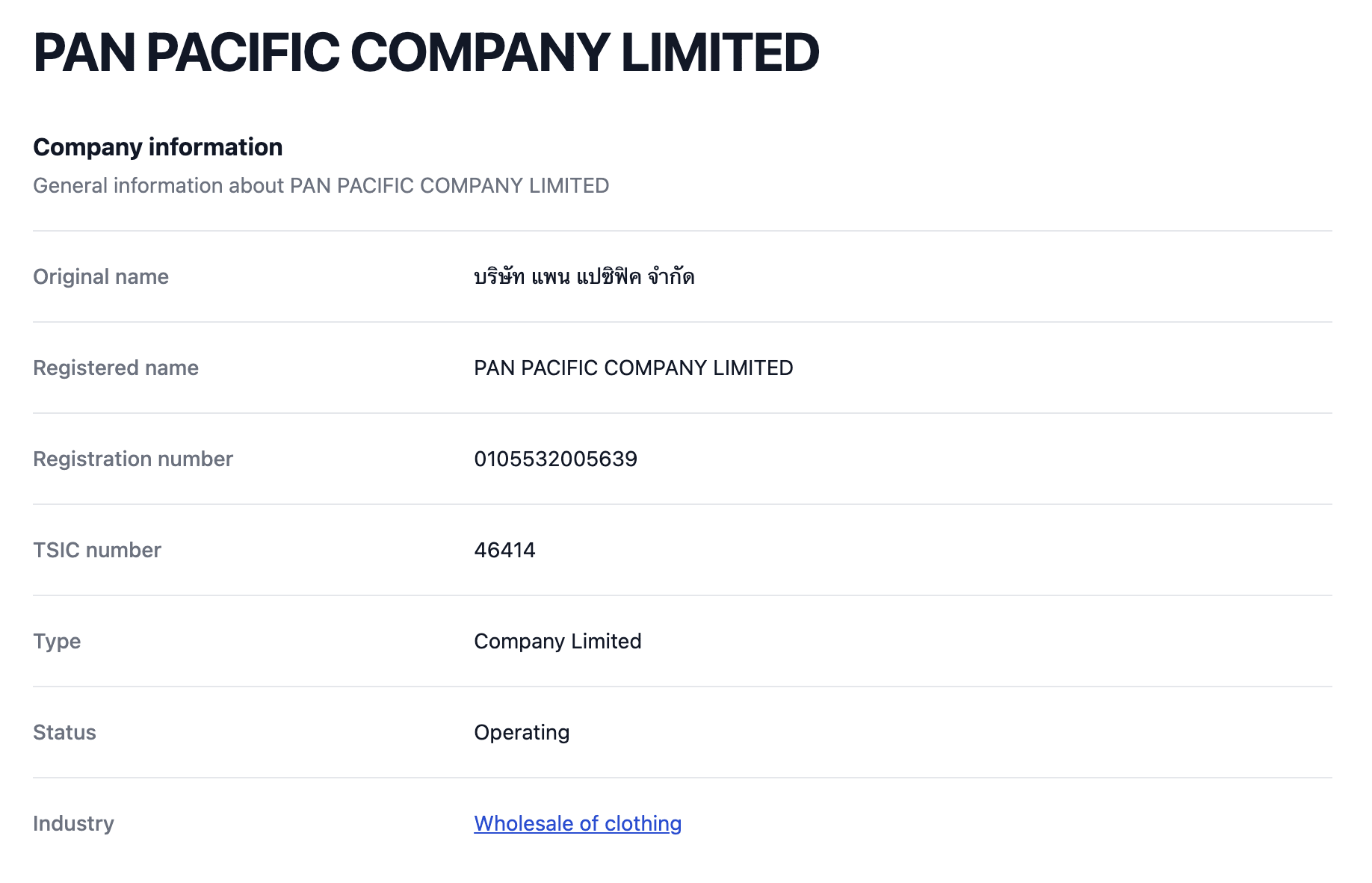 "ޕޭން ޕެސިފިކް ކޮމްޕެނީ"ގެ ނަމުގައި ދެކުނު ކޮރެއާ, އިންޑޮނޭޝިއާ އަދި އިރުމަތީ އޭޝިއާގެ އެހެން ގައުމުތަކުގައި ކުންފުނި ހިންގަމުންދެ އެވެ. ތައިލޭންޑްގައި ވެސް އެ ނަމުގައި ކުންފުންޏެއް އޮތް އެބައޮތެވެ. ނަމަވެސް, އެ ކުންފުނި ހަރަކާތްތެރިވަނީ އަންނައުނު ހޯލްސޭލް ކުރުމުގައިކަން ވިޔަފާރި ރެޖިސްޓްރީން އެނގެ އެވެ.