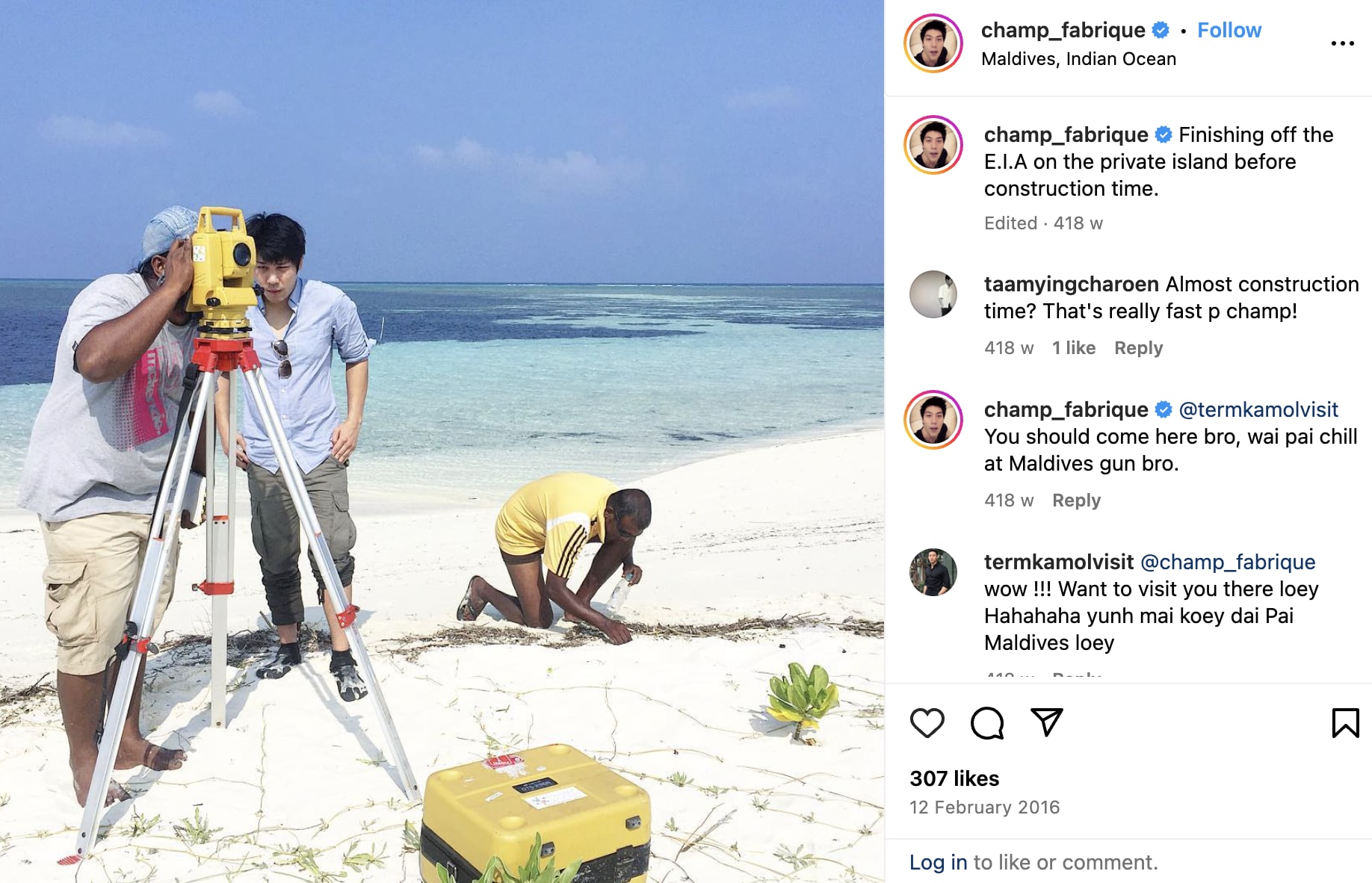 ފެބްރުއަރީ 12, 2016 ގައި އޭނާ އަޕްލޯޑުކުރި ފޮޓޯގެ ކެޕްޝަނުގައި އޮތީ އޭނާގެ "ޕްރައިވެޓް އައިލެންޑް" ގެ އީއައިއޭގެ ހެދުމުގެ މަސައްކަތް ކޮންސްޓްރަކްޝަން ފެށުމުގެ ކުރިން ނިންމާލަނީ ކަމަށެވެ. އެންވަޔަރަމަންޓަލް ޕްރޮޓެކްޝަން އޭޖެންސީ (އީޕީއޭ) ގެ ރިޕޯޓުތަކުން އެނގޭ ގޮތުގައި މި އީއައިއޭ ހެދީ ރީފްޓެކް މޯލްޑިވްސްއިންނެވެ.