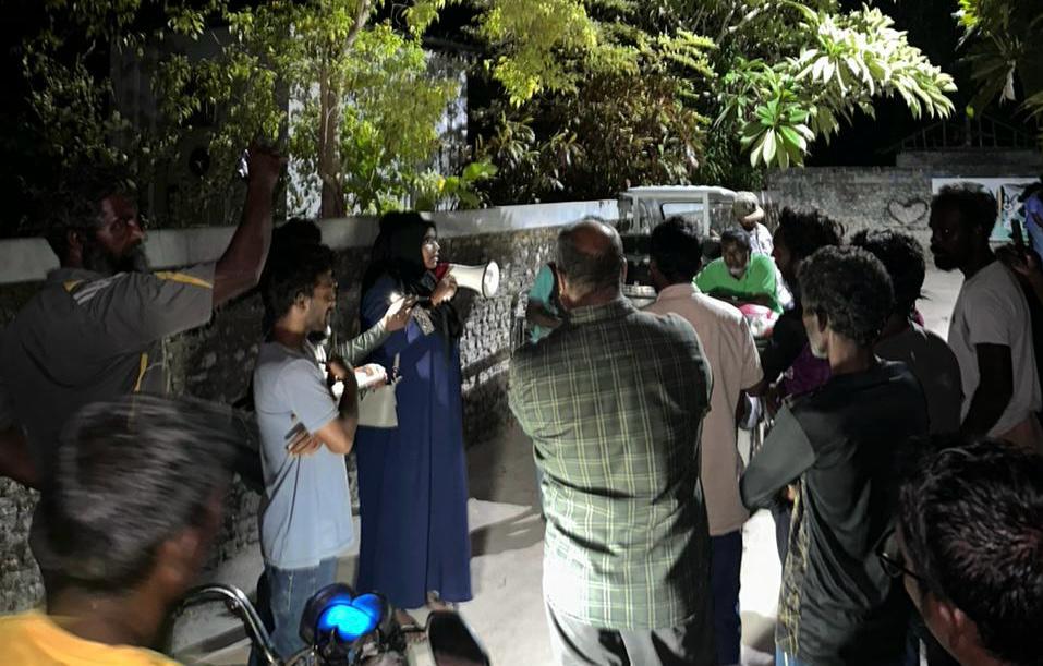 ހދ. ވައިކަރަދޫ އިންޖީނުގޭގެ ސްޓޭޝަން މެނޭޖަރު ޝަހީދާ ރޭގެ މުޒާހަރާގެ ބައިވެރިންނާ ވާހަކަ ދައްކަނީ.