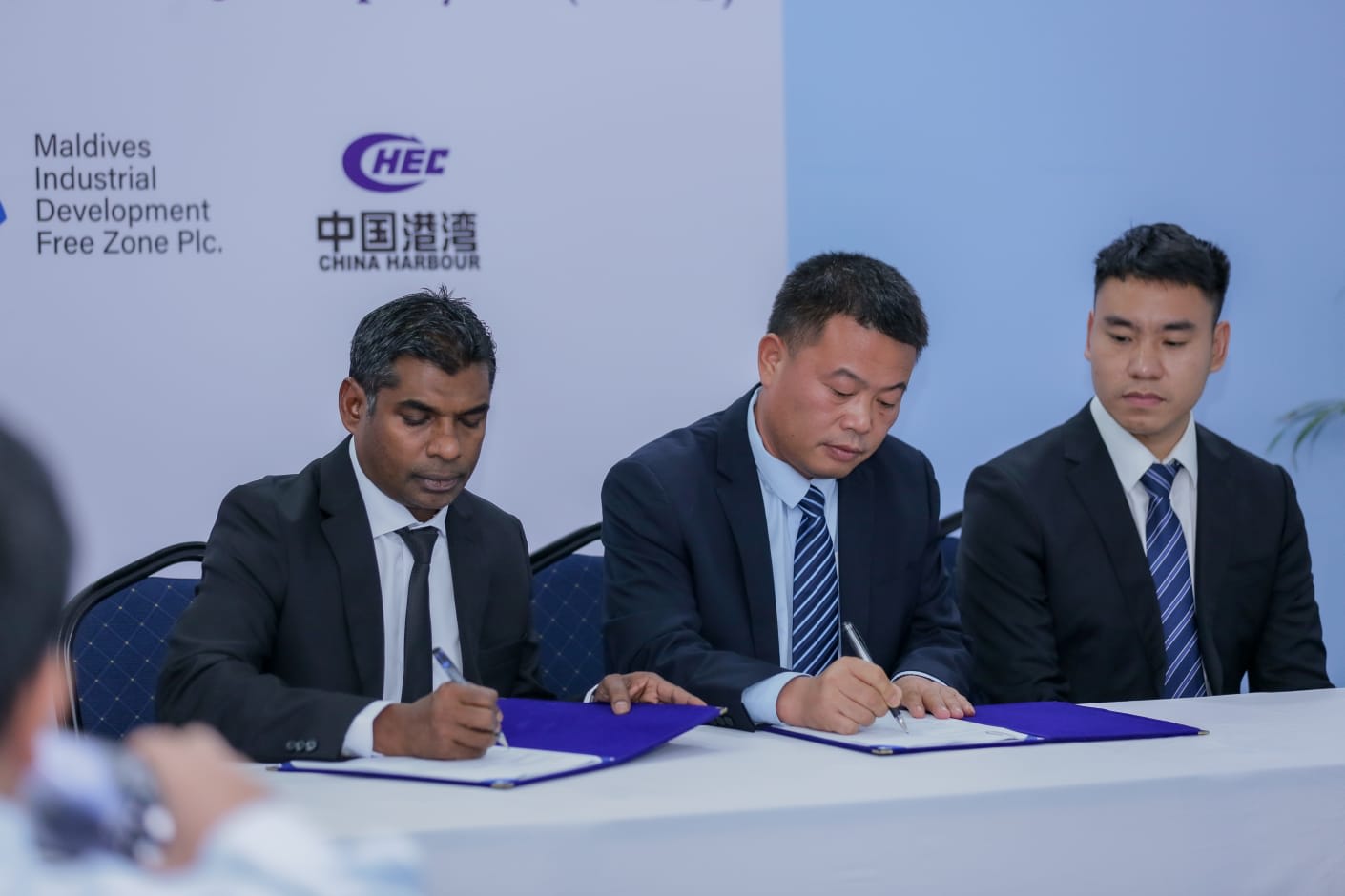 އުތުރު ތިލަފަޅުން ބިން ހިއްކައިގެން ދަނޑުވެރިކަމުގެ ބިޔަ މަޝްރޫއެއް ހިންގުމަށް ޓަކައި މޯލްޑިވްސް އިންޑަސްޓްރިއަލް ޑިވެލޮޕްމަންޓް ފްރީ ޒޯން އިން ޗައިނާ ހާބަރް އިންޖިނިއަރިން ކޮމްޕެނީ ލިމިޓެޑާއި އެކު އެމްއޯޔޫއެއްގައި ސޮއިކޮށްފި އެވެ.