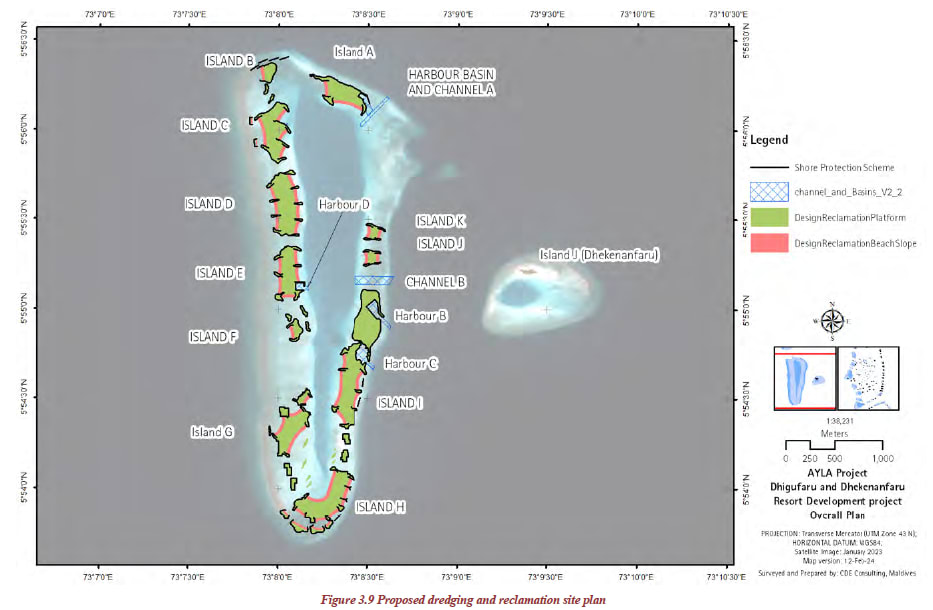 Eleven islands and 24 sandbanks are to be reclaimed from Noonu Dhigufaru under a project to be carried out in the lagoon leased for 99 years along with the Dhekenanfaru island, according to the environment impact assessment (EIA) report for the project.