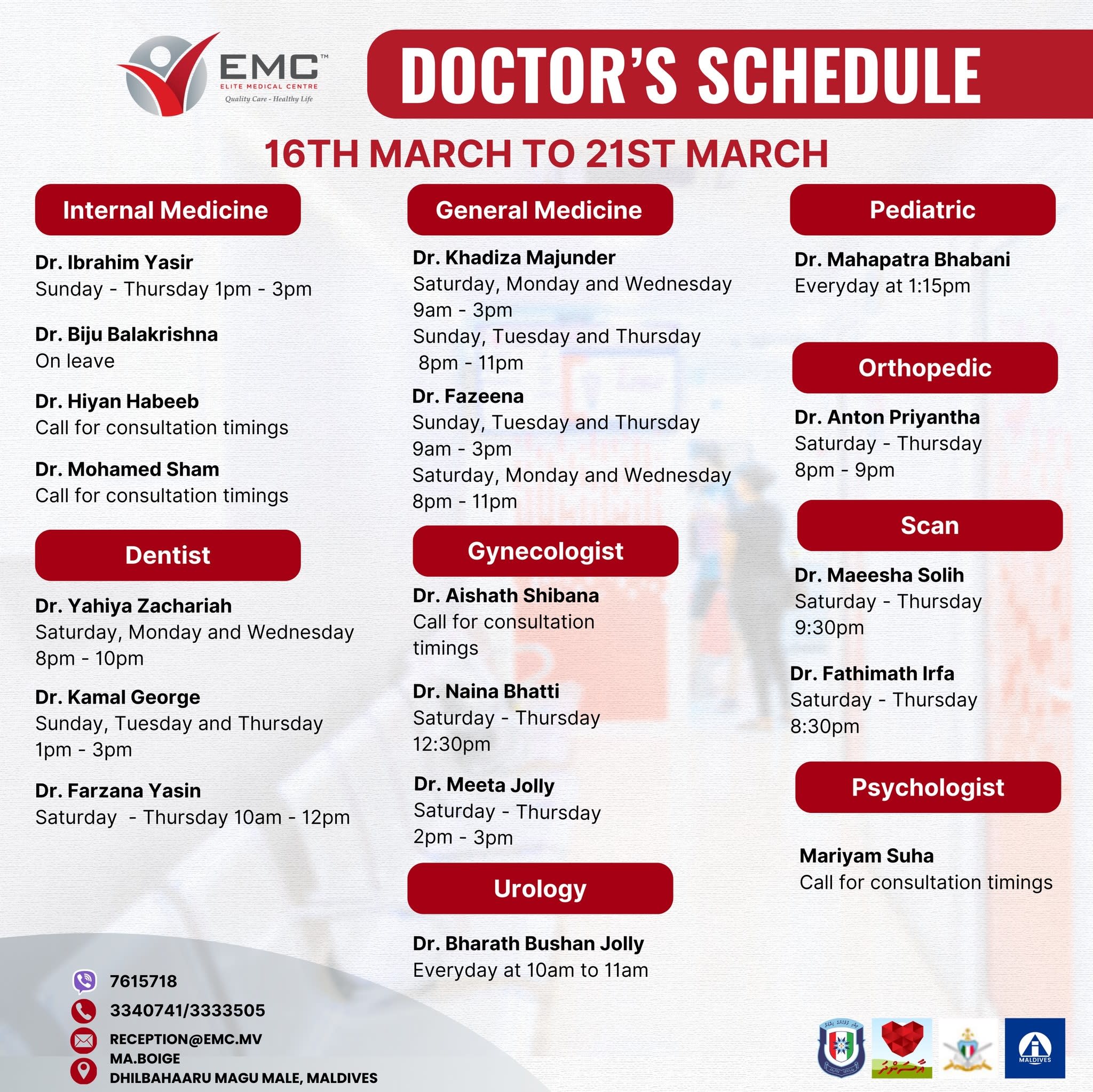 އީއެމްސީއިން "އަދަދު" އާ ވާހަކަ ދައްކަމުން ބުނީ ޑރ. ޔާސިރު މި ހަފްތާގެ އާދީއްތަ އިން ފެށިގެން ބުރާސްފަތި ދުވަހުގެ ނިޔަލަށް ބަލިމީހުން ބައްލަވާނެ ކަމަށާއި، ޔާސިރު ބަލިމީހުން ބައްލަވަނީ ވިޒިޓިން ޑޮކްޓަރެއް ގޮތުގައި ކަމަށެވެ.