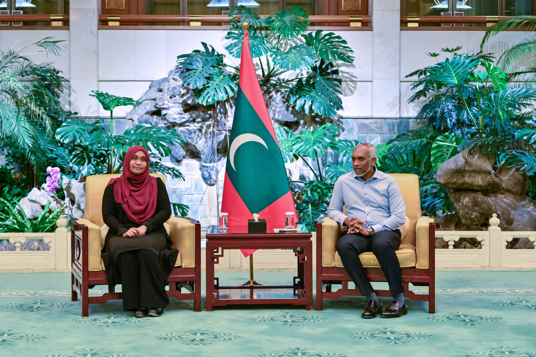 ރައީސް ޑރ. މުހައްމަދު މުއިއްޒު އާއި އަނބިކަނބަލުން ސާޖިދާ މުހައްމަދު. -- ފޮޓޯ: ރައީސް އޮފީސް