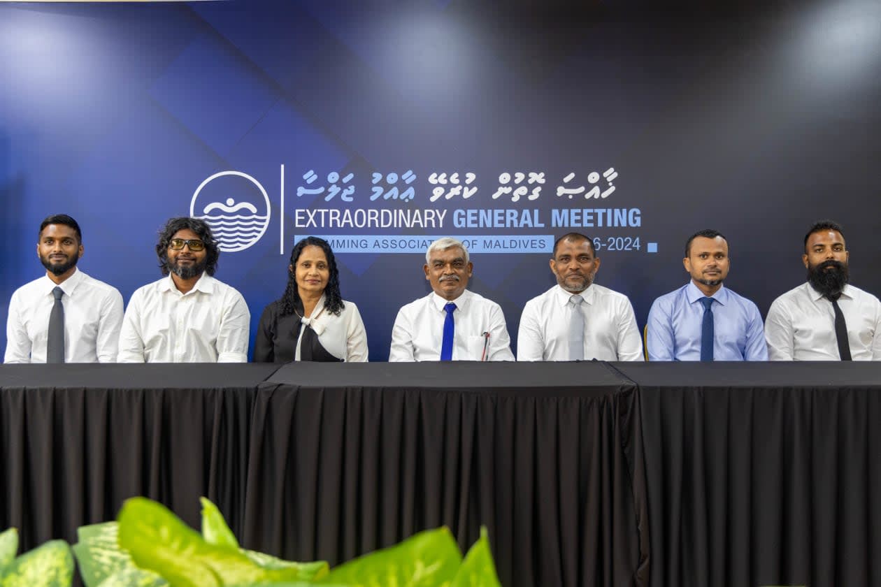 ސްވިިމިން އެސޯސިއޭޝަންގެ ހިންގާ ކޮމިޓީ އަށް އިންތިހާބުވި މެމްބަރުން: ޓެކްނިކަލް އޮފިޝަލުން ތަމްސީލްކުރާ މެމްބަރު، ސިރާރު މިއަދުގެ ޖަލްސާގައި ބައިވެރިވެވަޑައިނުގެންނެވީ، މުބާރާތެއްގެ މަސައްކަތުގައި ރަށުންބޭރުގައި ހުންނެވުމުން ކަމަށް، އެސޯސިއޭޝަނުން ވަނީ މައުލޫމާތުދީފައި.--- ފޮޓޯ: ސްވިމިން އެސޯސިއޭޝަން