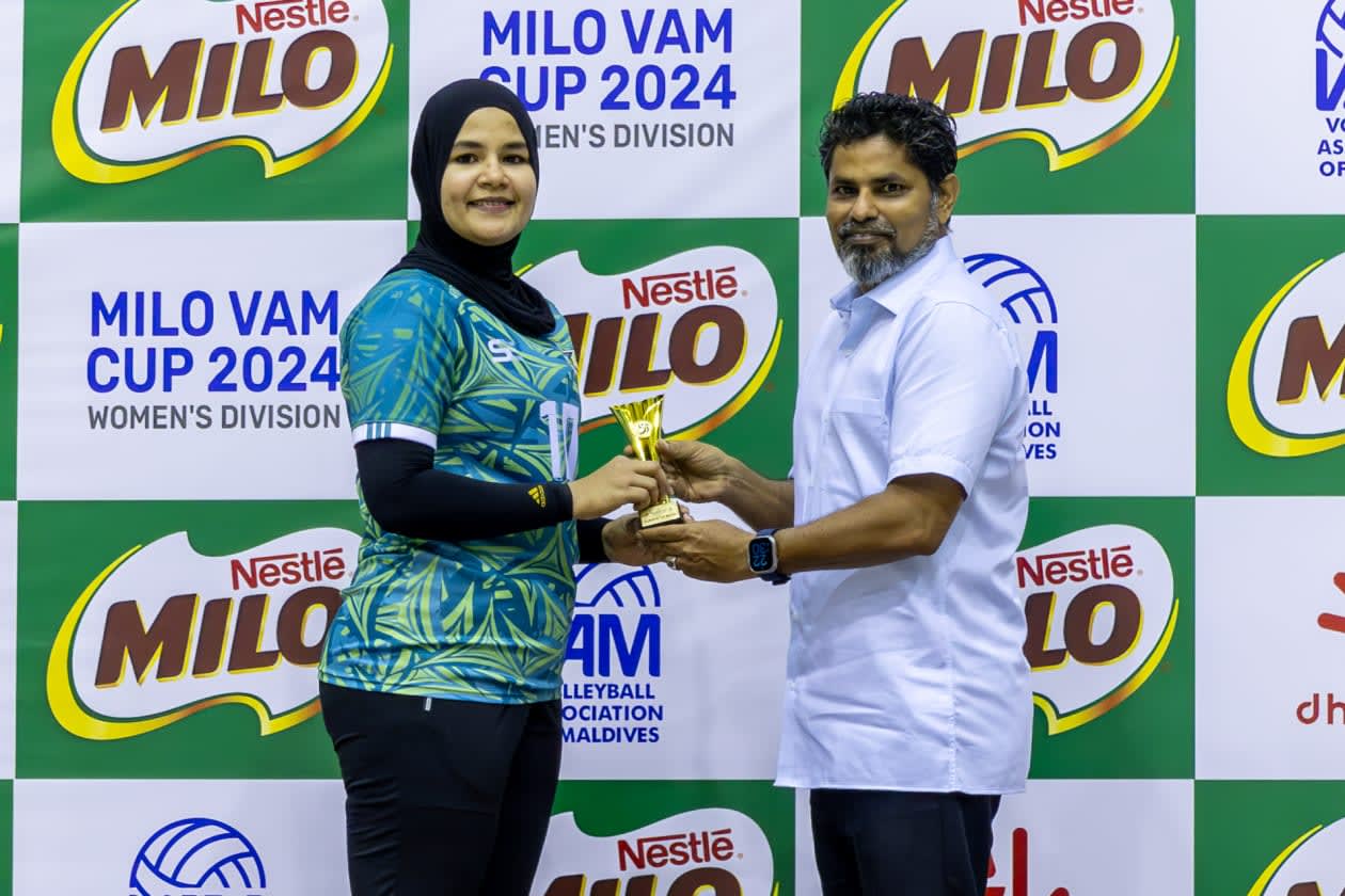 މުބާރާތުގެ މޮޅު ކުޅުންތެރިޔާގެ ޓްރޮފީ މާޖިދާ (ވ)އާ ހަވާލުކުރަނީ.--- ފޮޓޯ: އަތޫފް އާތިފް / އަދަދު