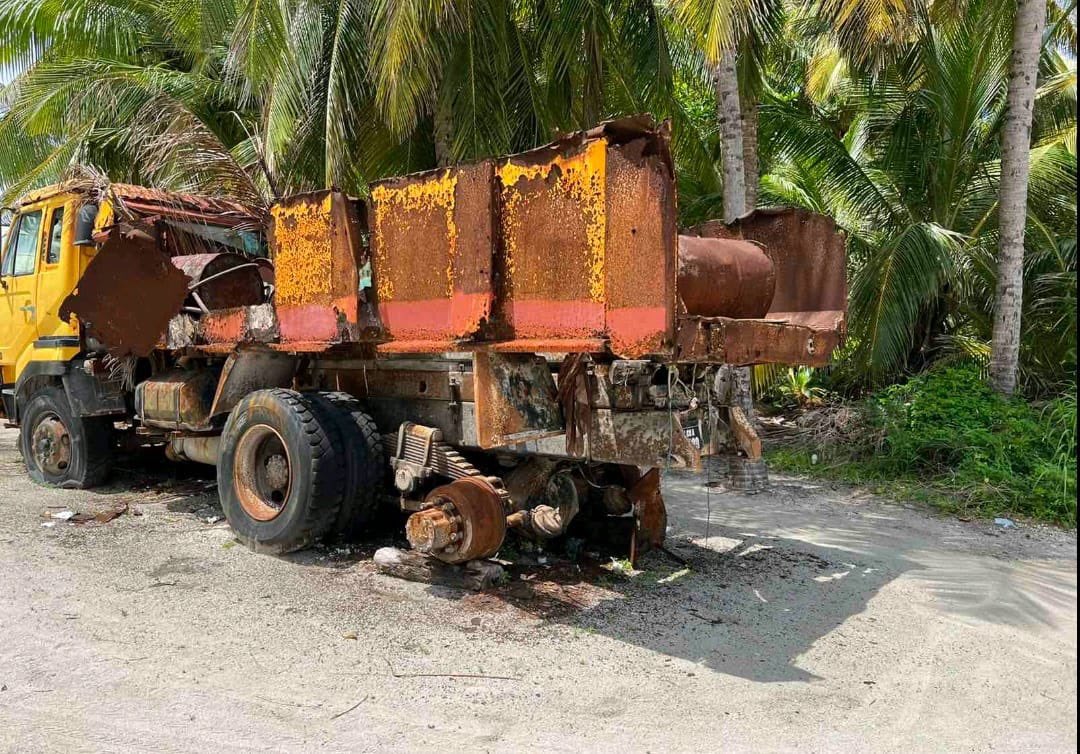"މިއީ 2018 ގައި އެމްޑީޕީ ސަރުކާރާ ހަވާލުވިއިރު ރަށްރަށުގެ ވަލުތެރެއައް އުކާލާފައި ހުރި ބައއް މެޝިނަރީސް ތަކުގެ ފޮޓޯ" މިހެން ލިޔުއްވާ އަކްރަމް ހިއްސާކުރެއްވި ފޮޓޯއެއް