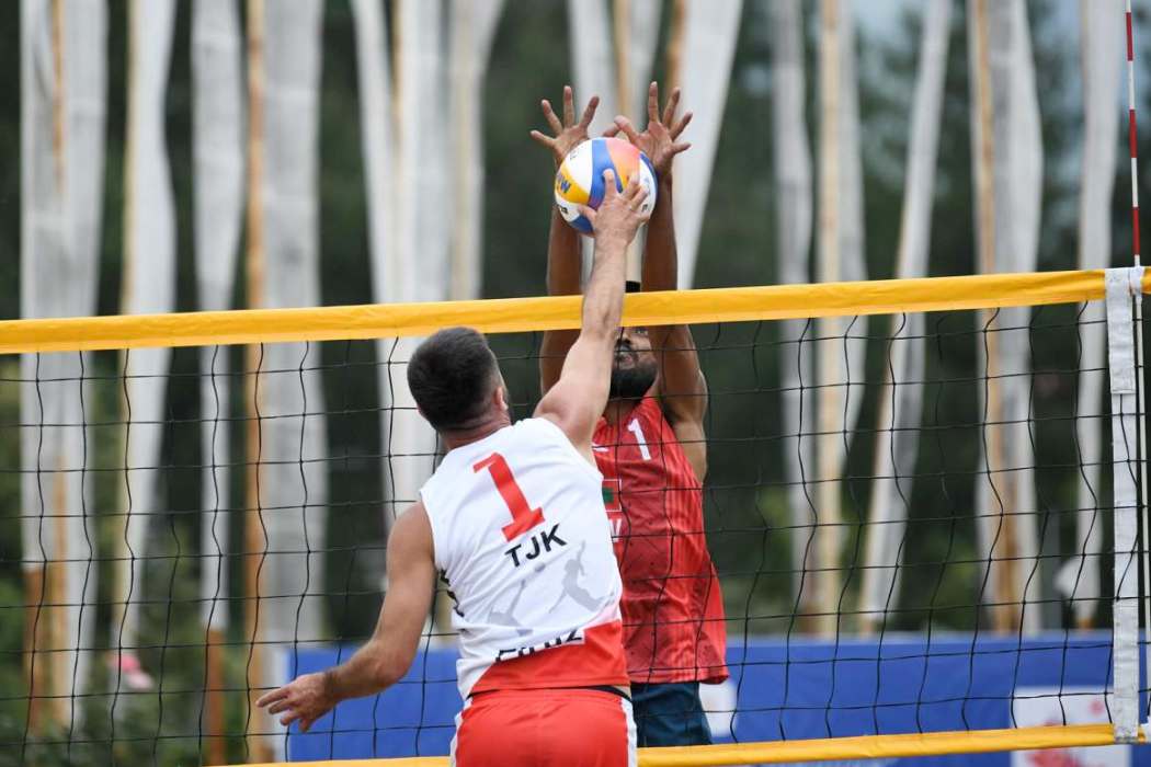 ސެންޓްރަލް އޭޝިއަން ވޮލީބޯލް އެސޯސިއޭޝަން (ކާވާ)، ބީޗް ވޮލީބޯލް ޗެލެންޖު ކަޕުގައި ތަޖިކިސްތާނާއި ރާއްޖެ ކުޅުނު މެޗެއްގެ ތެރެއިން.--- ފޮޓޯ: ބޫޓާން ވޮލީބޯލް ފެޑެރޭޝަން