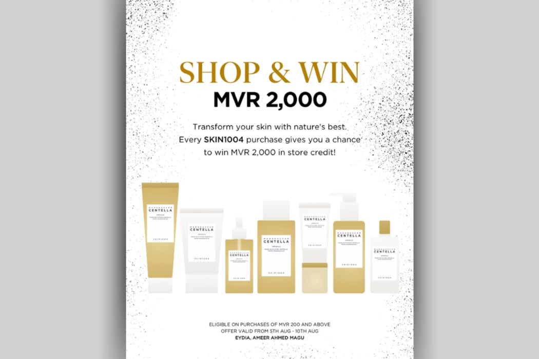 އައިޑިއާ ފިހާރައިން ރާއްޖެއަށް ތައާރަފު ކުރި "ސްކިން 1004" ގެ އުފެއްދުންތަކަށް މި މަހުގެ 10 ވަނަ ދުވަހުގެ ނިޔަލަށް 10 ޕަސެންޓުގެ ޑިސްކައުންޓެއް ލިބޭނެ އެވެ. އަދި 200ރ. އިން މަތީގެ ވިޔަފާރި ކޮށްގެން 2،000ރ. ލިބުމުގެ ފުރުސަތު ވެސް އެބަ އޮތެވެ.