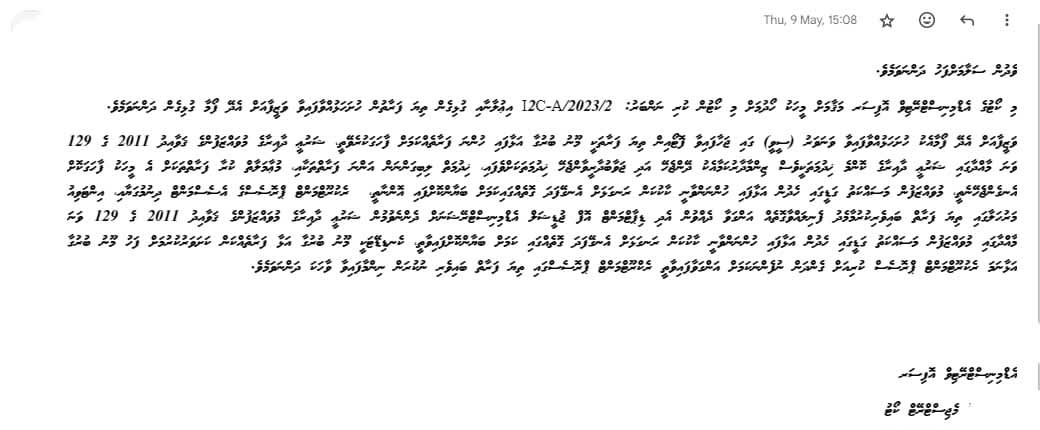 އެ ކޯޓުން އޭނާއަށް ފޮނުވި މެއިލްގައި ބުނެފައިވަނީ ވަޒީފާ ފޯމާ އެކީ ހުށައަޅާފައިވާ ވަނަވަރުގައި މޫނު ބުރުގާ އަޅާފައި ހުރިކަން ފާހަގަކުރެވިފައިވާތީ ޝަރުއީ ދާއިރާގެ މުވައްޒަފުންގެ ގަވާއިދަށް ފުށުއަރާ ކަމަށެވެ.