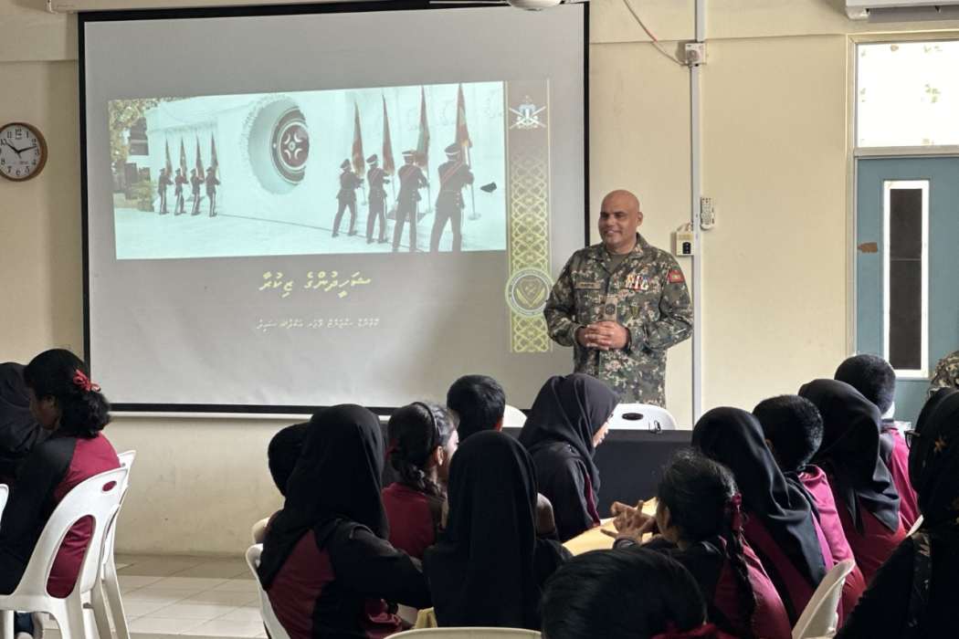 ސިފައިން ބުނި ގޮތުގައި ސްކޫލު ދަރިވަރުންނަށް ގައުމިއްޔަތާ ބެހޭ ކަންކަން ކިޔައިދިނުމަށް އިއްޔެގެ ކްލާހުގައި މައުލޫމާތު ފޯރުކޮށްދިނީ ސާޖަންޓު މޭޖާ އަބްދުﷲ ސައީދު އެވެ.