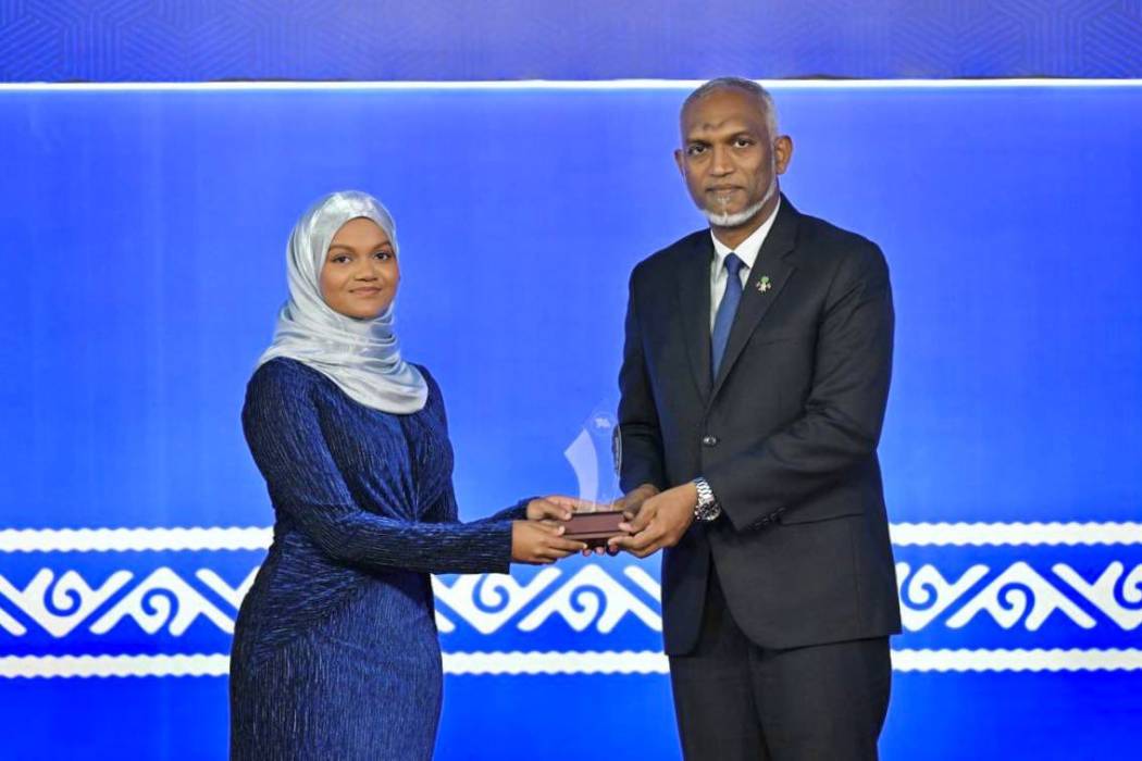 މަތީ އަރުތަވެރިންގެ އިނާމު ހާސިލުކުރި ދަރިވަރުންނަށް އިނާމު ދިނުން -- ފޮޓޯ: ރައީސް އޮފީސް