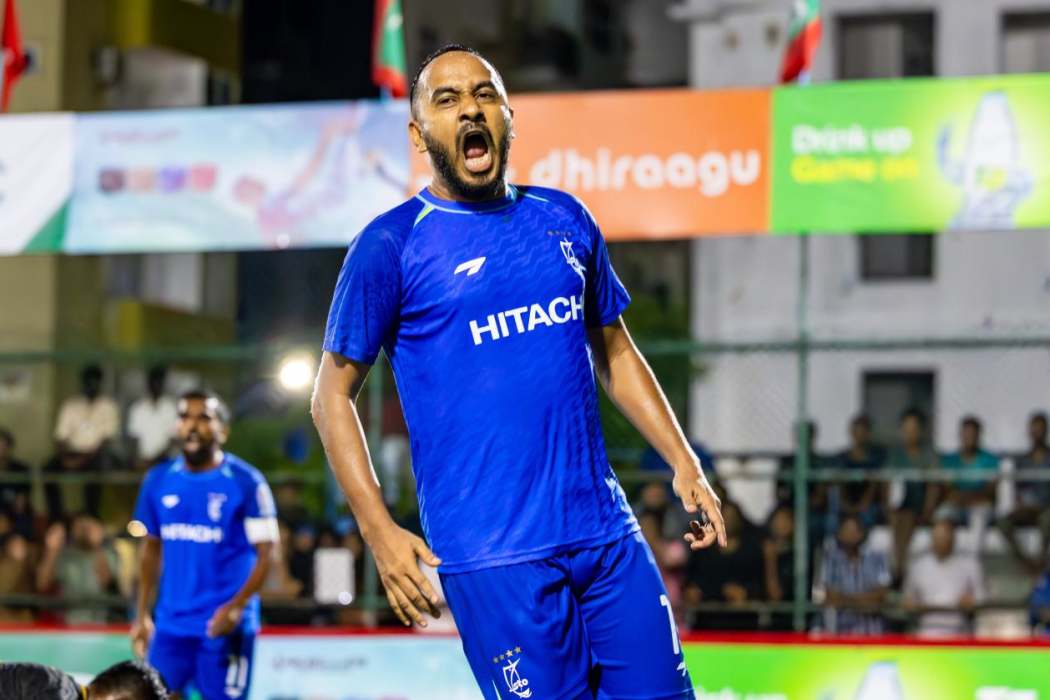 އެސްޓީއޯ ޓީމުގެ އިސްމާއިލް އީސާ ލަނޑު ޖެހުމަށް ފަހު އުފާފާޅުކުރަނީ.--- ފޮޓޯ: އިމޭޖަސް.އެމްވީ