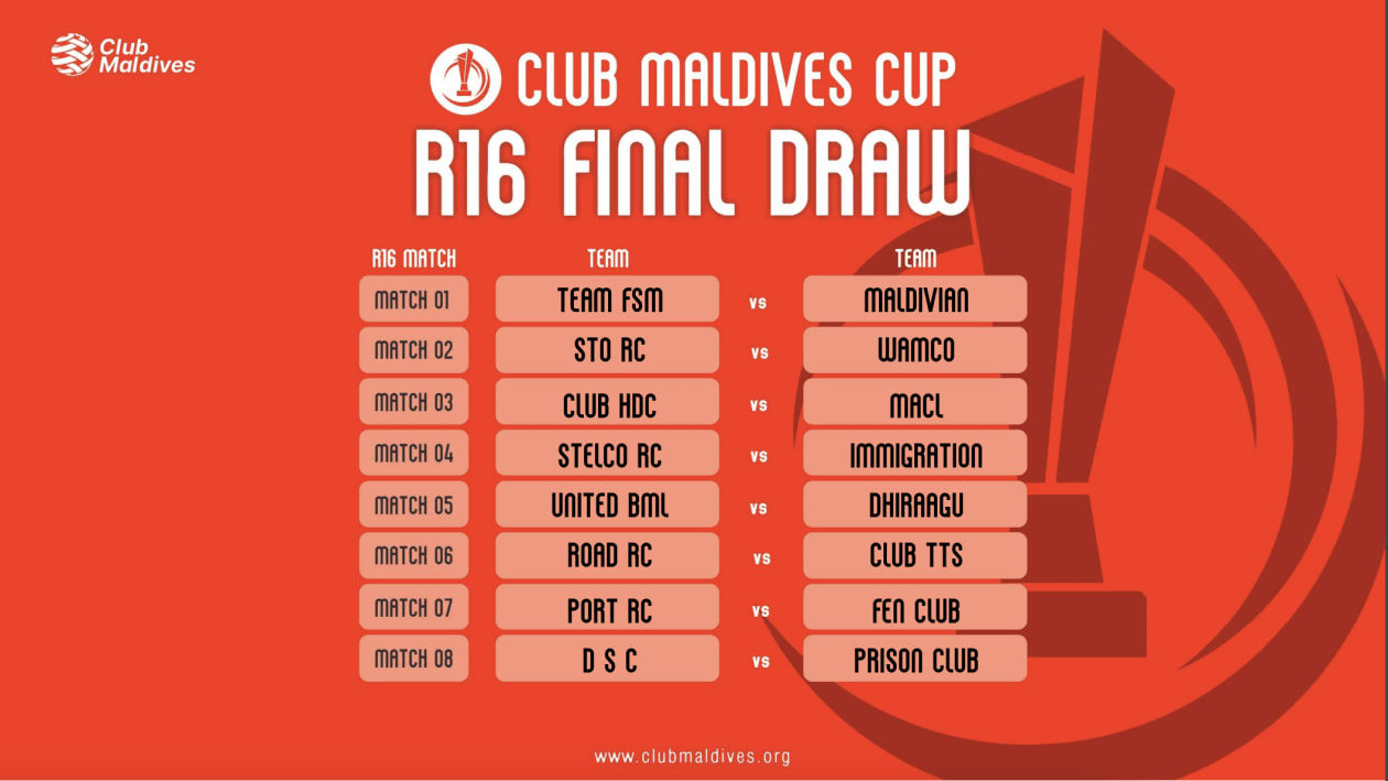 ކްލަބް މޯލްޑިވްސް ކަޕްގެ ގަދަ 16 ގައި އެންމެ ފަހުގެ ޗެމްޕިއަން، ކްލަބް ވެމްކޯ އާއި މުބާރާތުގެ އެންމެ ކާމިޔާބު ޓީމު، އެސްޓީއޯ ރެކްރިއޭޝަން ކްލަބް ކުރިމަތިލާން ޖެހިއްޖެ އެވެ.