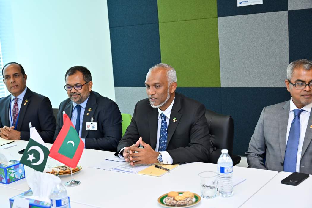ރައީސް ޑރ. މުހައްމަދު މުއިއްޒު މިފަހުން އދ. ގެ އާންމު މަޖިލީހުގެ ޖަލްސާގައި ބައިވެރިވާން ކުރެއްވި ދަތުރުގެ ތެރެއިން: ރާއްޖެ ސޮވަރިން ޑިފޯލްޓަކަށް ނުދާނެ ކަމުގެ ޔަގީންކަން އަރުވަމުން ރައީސް ވިދާޅުވީ "ހޯމް-ގްރޯން" އެޖެންޑާއެއް އެބައޮތް ކަމަށް -- ފޮޓޯ: ރައީސް އޮފީސް
