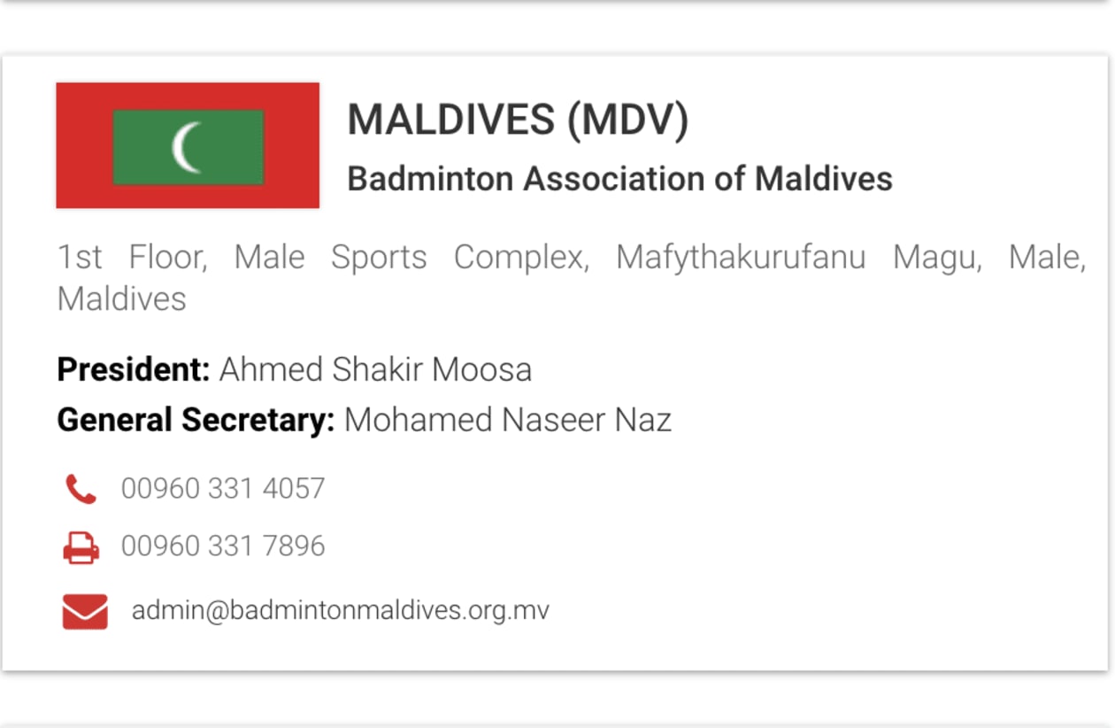 ސަރުކާރާއި މޯލްޑިވްސް އޮލިމްޕިކް ކޮމިޓީން ބެޑްމިންޓަން ވޯލްޑް ފެޑެރޭޝަން (ބީޑަބްލިއުއެފް)އާ ވަނީ ވާހަކަ ވެސް ދައްކައިފަ އެވެ. ރާއްޖޭގެ ބެޑްމިންޓަން ހާލަތު ވެސް އޮޅުންފިލުވައިދީފަ އެވެ. އެކަމަކު، ބީޑަބްލިއުއެފް އިން އަދިވެސް އޮތީ ރާއްޖޭގެ ބެޑްމިންޓަން އެސޯސިއޭޝަން ކުރިއަށްދާނެ ގޮތެއް ނުނިންމަ އެވެ. ބީޑަބްލިއު އެފަށް ކަންކަން އޮޅުވާލާ ކަމުގެ ތުހުމަތު ބެޑްމިންޓަން އެސޯސިއޭޝަންގެ ފަރާތްތަކަށް ކުރެ އެވެ.