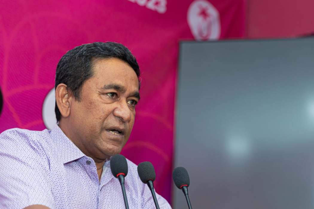 ކުރީގެ ރައީސް އަބްދުﷲ ޔާމީނު ޕީޕީއެމްގެ ޖަލްސާއެއްގައި ވާހަކަ ދައްކަވަނީ: ބީއެމްއެލްއަށް އައި ހަމައެކަނި ބަދަލަކީ ސީއީއޯއަށް ދިވެއްސަކު އައްޔަނުކުރުން ކަމަށް އެމަނިކުފާނު ވިދާޅުވި --- ފޮޓޯ: އަދަދު