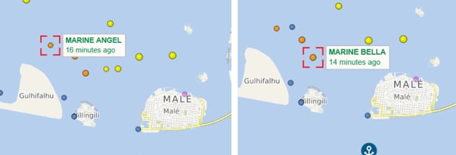 ކަނޑު އުޅަނދު ޓްރެކްކުރާ ވެސެލްފައިންޑާ އަދި މެރިން ޓްރެފިކް ފަދަ ސައިޓުތަކުން ދައްކާ ގޮތުގައި، 3258 ޓަނުގެ އެމްޓީ އޭންޖަލް އާއި 3939 ޓަނުގެ އެމްޓީ މެރިން ބެލާ މިހާރު އޮތީ ގުޅީފަޅު ބޭރުގަ އެވެ.