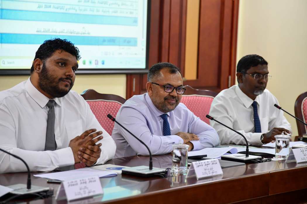 Minister Zameer and officials at budget review committee. -- Photo: Parliament Secretariat