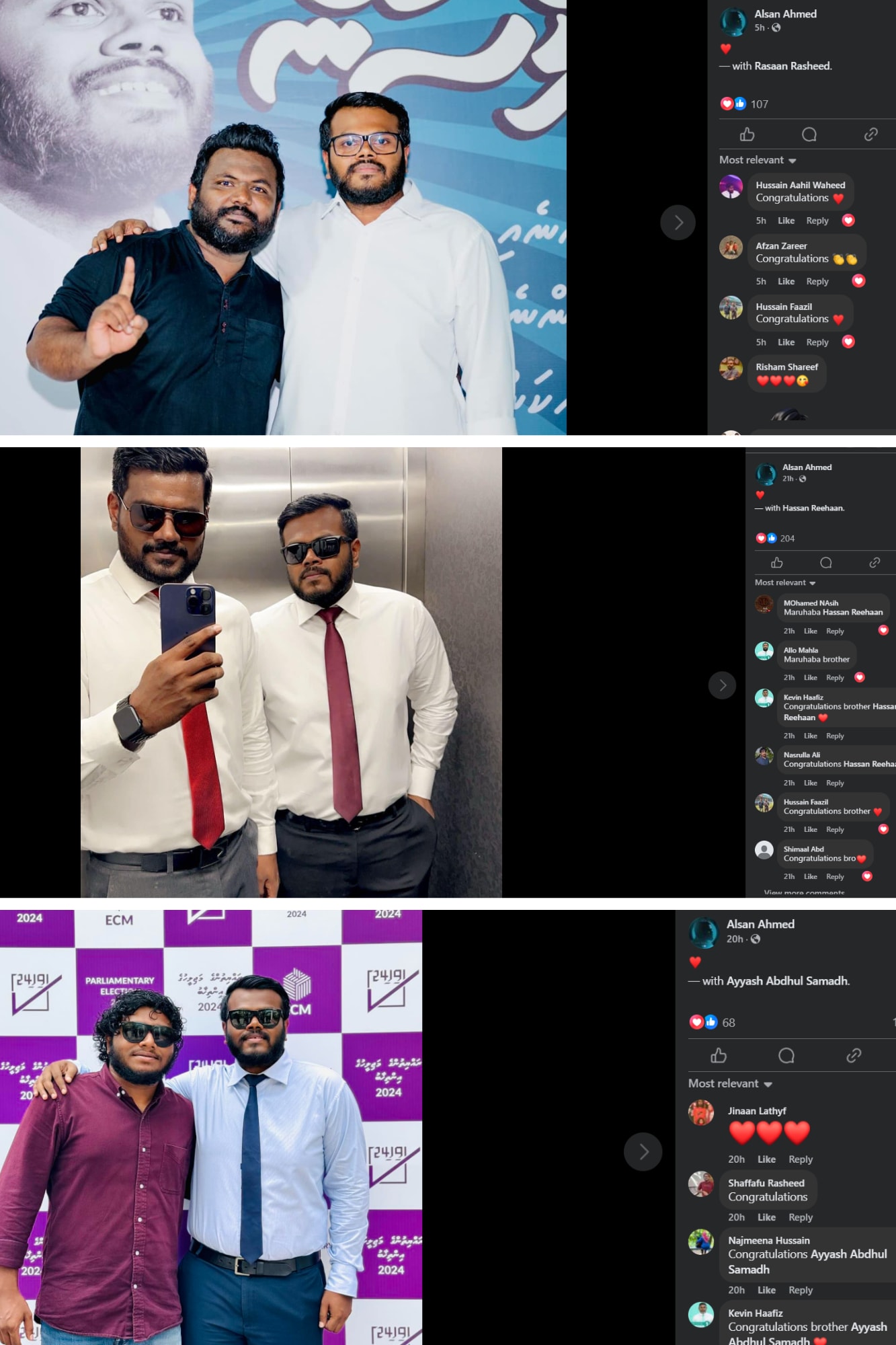 މަގާމުތަކަށް އައްޔަނުކޮށްފައިވާ ތިން މީހުންގެ ފޮޓޯ ފޭސްބުކަށް އަލްސަން ލުމާ އެކު، ގިނަ ބަޔަކު އަންނަނީ އެ ތިން މީހުންނަށް ވެސް މަރުހަބާ ކިޔަމުންނެވެ.