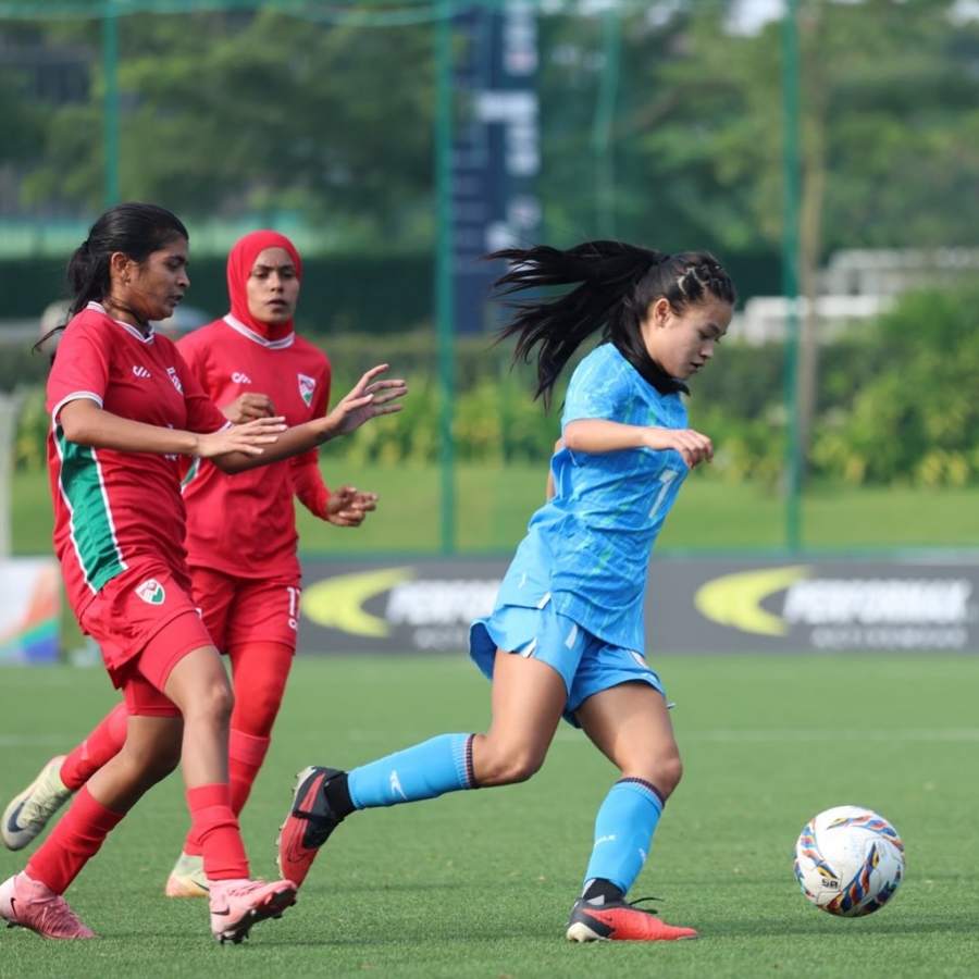 ބެންގަލޫރުގައި މިއަދު ކުޅުނު މެޗުގައި ރާއްޖޭގެ ހަމައެކަނި ލަނޑު ޖެހީ، މަރިޔަމް ރިފާ އެވެ. މިއީ ރާއްޖޭން މިހާތަނަށް އިންޑިއާއާ އެކު ކުޅުނު އަށް މެޗުގެ ތެރެއިން ޖެހި ފުރަތަމަ ލަނޑެވެ. އިންޑިއާ އިން ހަތް މެޗުން މޮޅުވިއިރު، 2016 ވަނަ އަހަރު އިންޑިއާގައި ކުޅުނު ސައުތު އޭޝިއަން ގޭމްސްގެ އަންހެން ފުޓްބޯޅަ އިވެންޓްގައި ރާއްޖޭން ވަނީ އިންޑިއާއާ 0-0 އިން އެއްވަރުކޮށްފަ އެވެ.