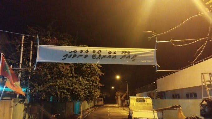އެ ބެނާތަކުގެ ތެރޭގައި "ދިވެހީންގެރާއްޖެ ވެރިޔަކަށް އިސްކުރެވުނީ ބަހުލޫލެއް" ކަމަށް ލިޔެފައިވާ ބެނާއެއް، ބަނދަރު މަތީގައި ދަމާފައިވެ އެވެ. އެ ބެނާ ހުރީ މިއަދު ރައީސް މުއިއްޒު ދިއްދޫ އަށް ވަޑައިގަންނަވާތީ މަރުހަބާ ކިޔުމަށް ހަދާފައިވާ ގިޑިގޭގެ ތެރެއިން ރަށުތެރެއަށް އަންނައިރު މޫނުޖެހޭ ގޮތަށެވެ.