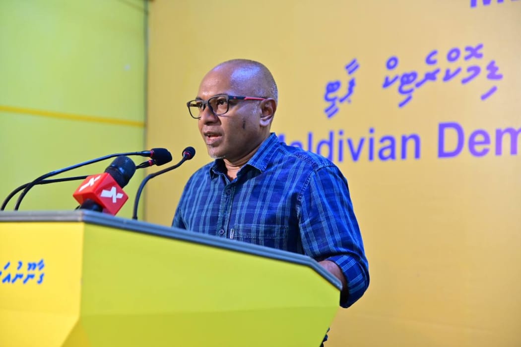 އެމްޑީޕީ ހަރުގޭގައި ރޭ ބޭއްވި ޖަލްސާގައި ހަސަން ލަތީފް ވާހަކަދައްކަވަނީ -- ފޮޓޯ: އެމްޑީޕީ