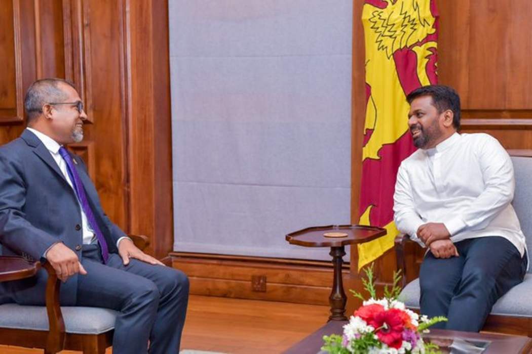 އަވައްޓެރި ސްރީލަންކާގެ ރައީސް، އަނޫރާ ކުމާރާ ޑިސަނަޔަކެ އާ ފޮރިން މިނިސްޓަރު ހަލީލް ބައްދަލު ކުރައްވައި ދެ ގައުމުގެ ދެމެދުގައި އޮންނަ ގުޅުން އިތުރަށް ބަދަހި ކުރުމާ ގުޅޭގޮތުން މަޝްވަރާ ކުރައްވައިފި އެވެ.