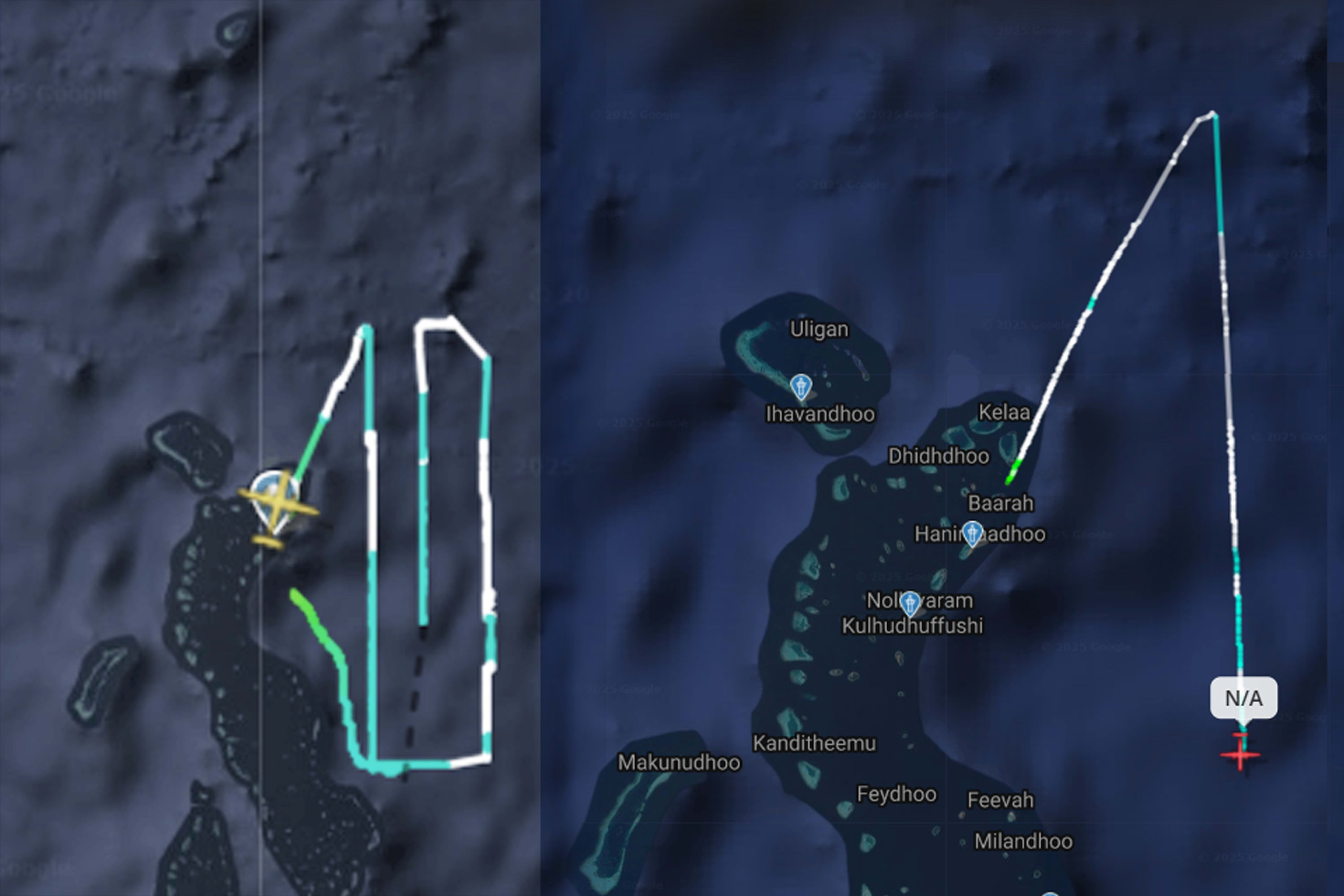 ވައިގެމަގުން ދަތުރުކުރާ އުޅަނދުތައް ޓްރެކްކުރާ ސައިޓުތަކުން ދައްކާ ގޮތުގައި ހަނިމާދޫ އިންޓަނޭޝަނަލް އެއާޕޯޓުން ޑޯނިއާ ފުރީ މީގެ ގަޑިއިރެއްހާއިރު ކުރިންނެވެ. މި ދަތުރުގައި އެ އުޅަނދު ވަނީ ހއ. ކެލާ އިން ފެށިގެން 60 އަށްވުރެ ގިނަ ކިލޯމީޓަރު އުތުރަށް ދުއްވައިފަ އެވެ. އެ ހިސާބުން އަނބުރާލުމަށްފަހު ދުއްވީ ދެކުނަށެވެ.