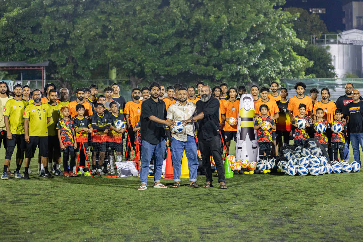 ޔުނިކާ އިން އީގަލްސް އާއި އެސްޕަޔާ ފުޓްބޯލް އެކަޑަމީ އަށް ކުޅިވަރު ސާމާނު ހަދިޔާކުރަން ބޭއްވި އިވެންޓުގެ ތެެރެއިން.-- ފޮޓޯ: މިރާޝް ނާޝިމް / އަދަދު ސްޕޯޓްސް