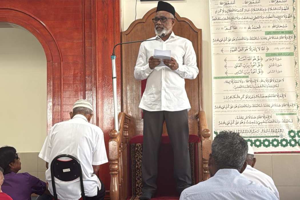 މިންބަރުގައި ހުންނަވައި މިއަދުގެ ހުތުބާ އަބްދުއްރަހީމް ވިދާޅުވަނީ. އެންމެފަހުން އެމަނިކުފާނު އިމާމުވެ ހުކުރު ކުރެއްވީ 2023 ގެ ރިޔާސީ އިންތިހާބުގެ ކެމްޕޭނުގެ ތެރޭގައި