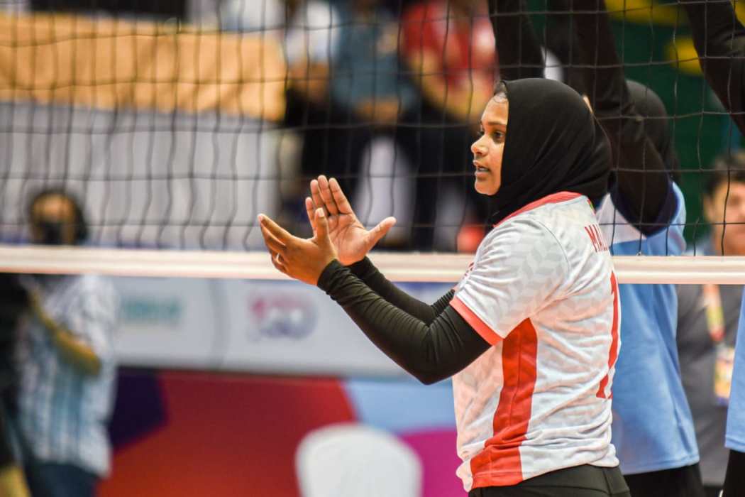 ގައުމީ އަންހެން ވޮލީބޯޅަ ޓީމުގެ މެޗެއްގެ ތެރެއިން.---- ފޮޓޯ: އަދަދު ފައިލް ފޮޓޯ