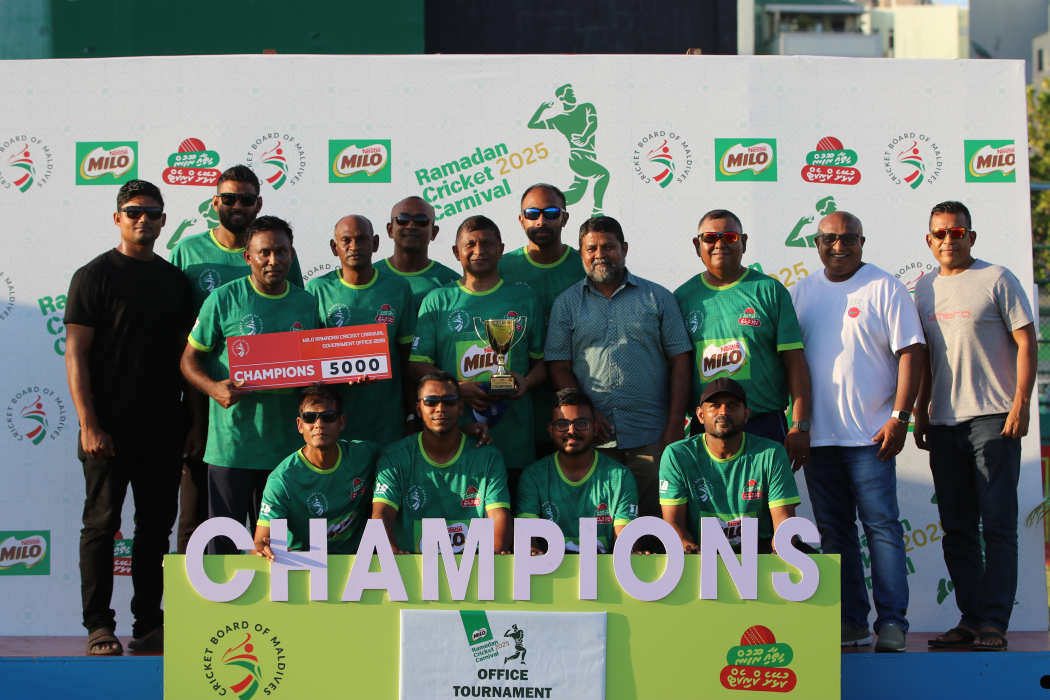 ކްރިކެޓް ކާނިވަލުގެ މުބާރާތްތަކުގެ ތެރެއިން މި އަހަރުގެ އޮފީސް ތަކަށް ހުޅުވާލާގެން ބޭއްވި މި މުބާރާތުގެ ޗެމްޕިއަންކަން ސިފައިންގެ ޓީމުން ހޯދީ ފައިނަލުގައި ކަސްޓަމްސް ރެކްރިއޭޝަން ކުލަބާއި ބައްދަލުކޮށް 7 ވިކެޓުން މެޗު ކާމިޔާބު ކޮށްގެންއެވެ.