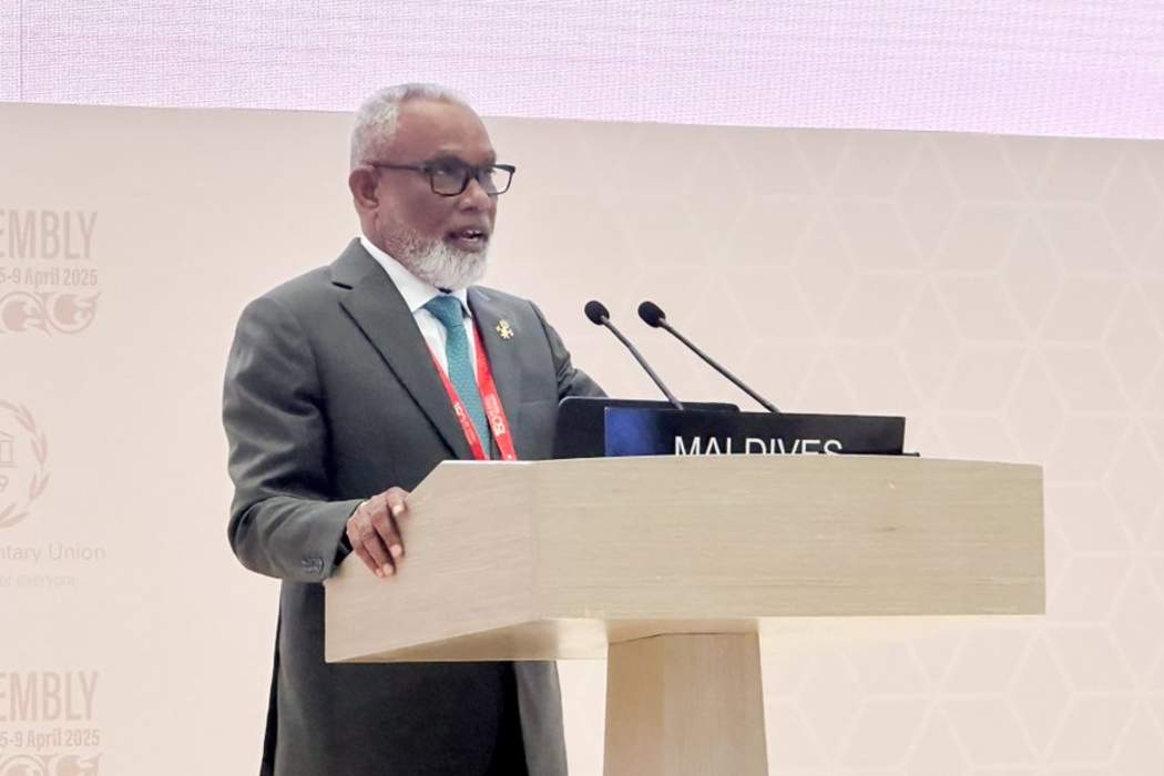 އައިޕީޔޫ އެސެމްބްލީގައި އަބްދުއްރަހީމް ވާހަކަދައްކަވަނީ -- ފޮޓޯ: ރައްޔިތުންގެ މަޖިލިސް