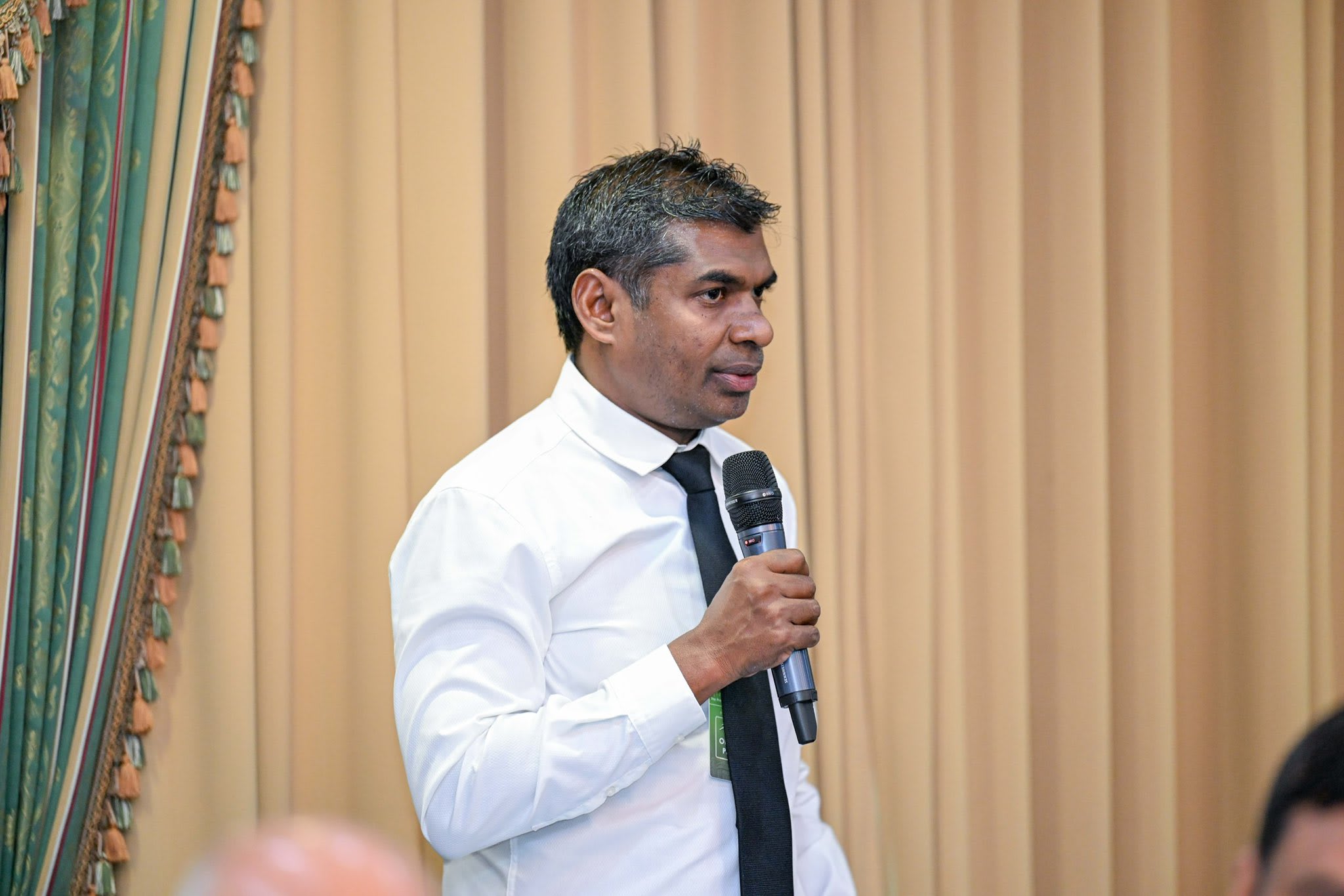 މިއަދުގެ ބައްދަލުވުމުގައި އެސްޓީއޯގެ އެމްޑީ ޝިމާދު ވާހަކަދައްކަވަނީ --- ފޮޓޯ: ރައީސް އޮފީސް