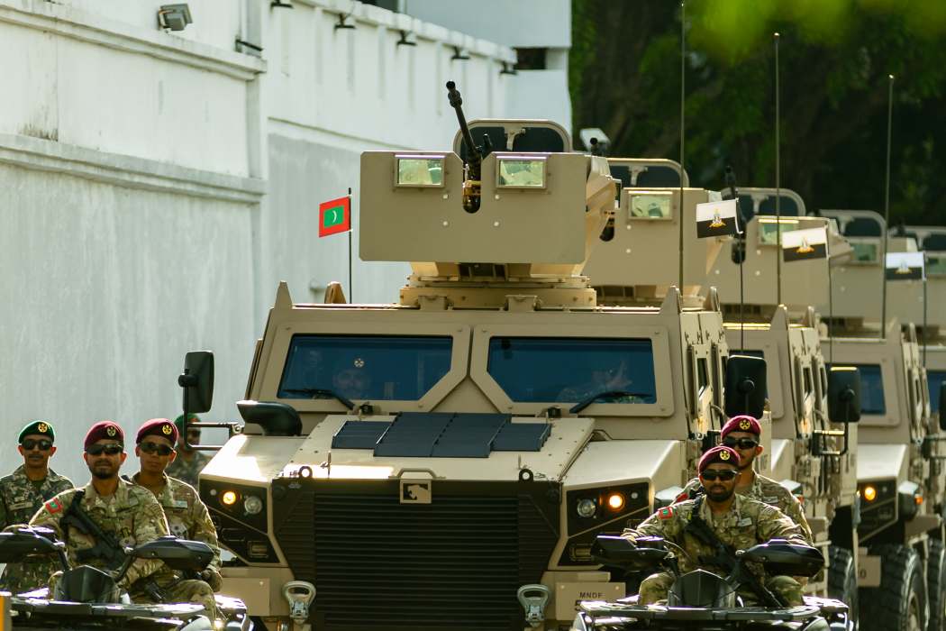 މި ފަހުން އެމްއެންޑީއެފް އަށް ގެނައި އާމާޑް ވެހިކަލްތައް: ރައީސް ވިދާޅުވީ ޓޭންކަރުތައް ގެނައީ ހަނގުރާމައަކަށް ނުކުންނާކަށް ނޫން ކަމަށް --- ފޮޓޯ: އަތޫފް އާތިފް/އަދަދު