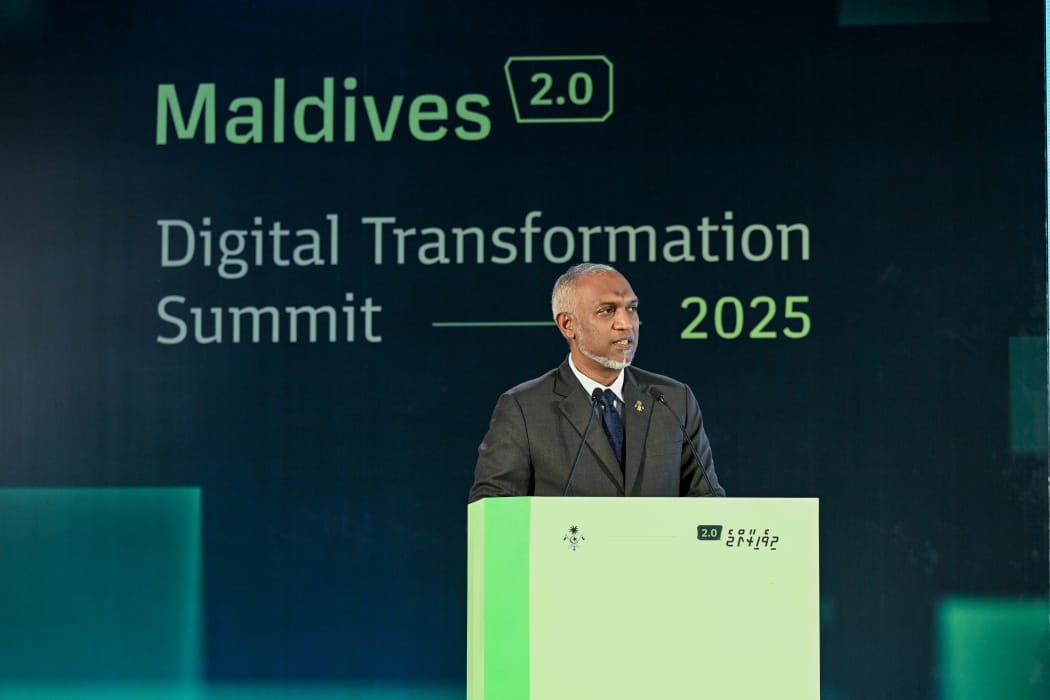 ދިވެހިރާއްޖެ 2.0 ސަމިޓުގައި ރައީސް ޑރ. މުހައްމަދު މުއިއްޒު ރޭ ވާހަކަ ދައްކަވަނީ. -- ފޮޓޯ: ރައީސް އޮފީސް