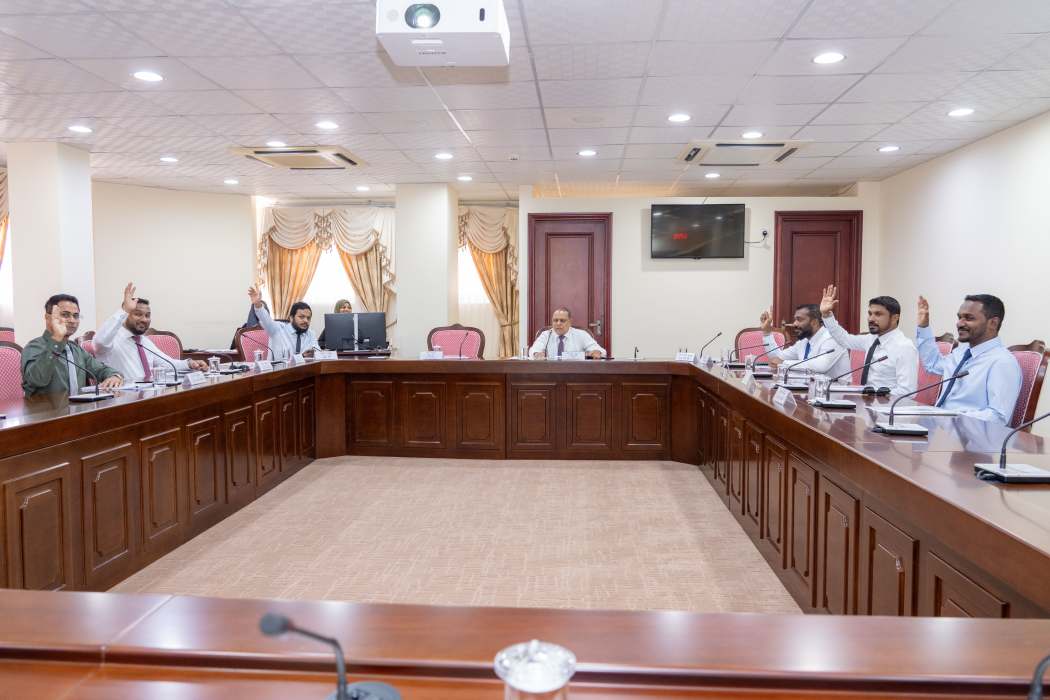 މިނިވަން މުއައްސަސާތަކާ ބެހޭ ކޮމިޓީގެ މިއަދުގެ ބައްދަލުވުމުގައި ވޯޓު ދިން ވަގުތު -- ފޮޓޯ: ރައްޔިތުންގެ މަޖިލިސް