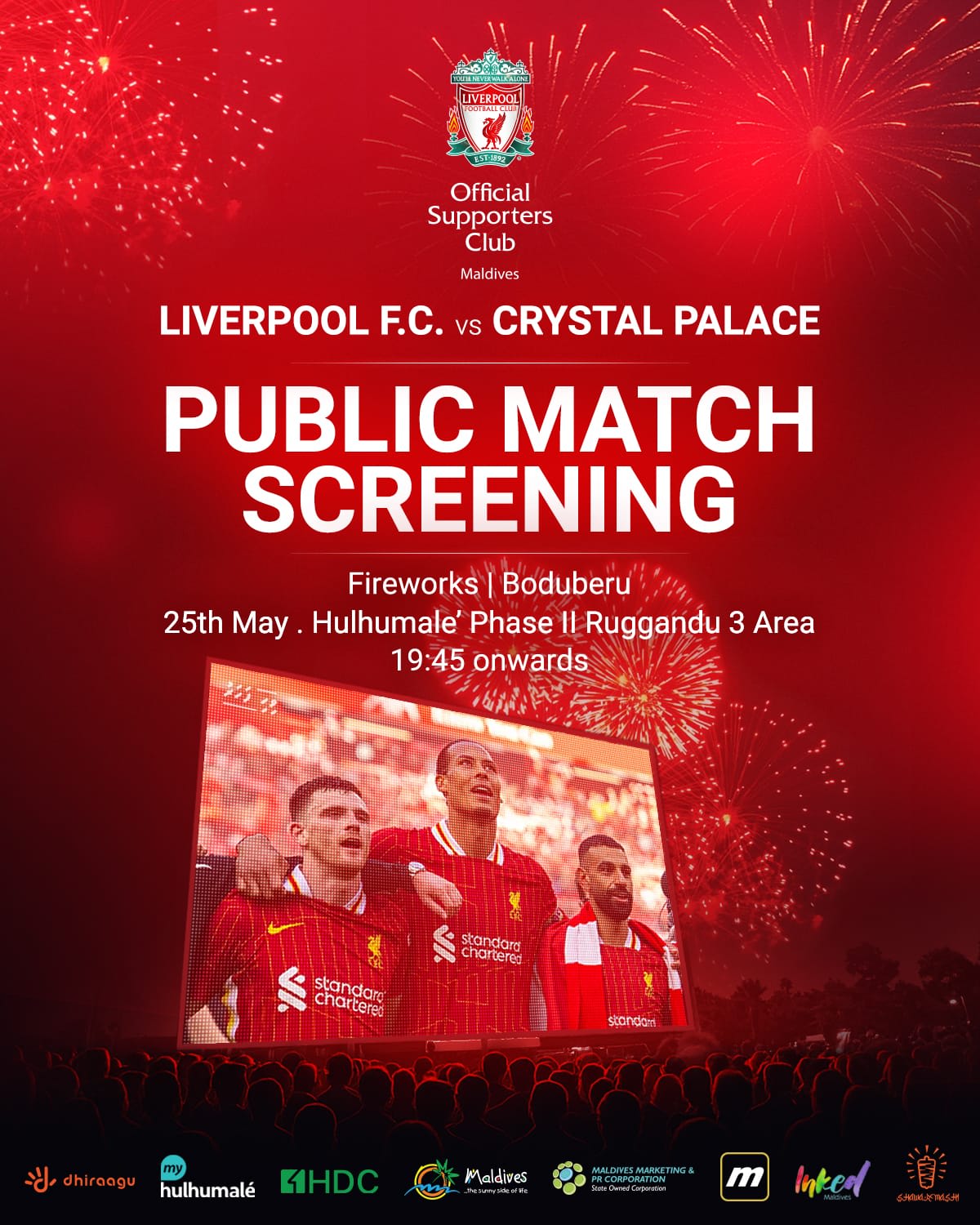 ރާއްޖޭގައި އެންމެ ފުޅާކޮށް ހަރަކާތްތެރިވާ ބައިނަލްއަގުވާމީ ފުޓްބޯޅަ ކްލަބް ސަޕޯޓަރުންގެ ޖަމިއްޔާ ކަމަށްވާ "އޮފިޝަލް ލިވަޕޫލް ސަޕޯޓާސް ކްލަބް އޮފް މޯލްޑިވްސް" އިން މިރޭ މީޑިއާ އަށް ދިން މައުލޫމާތުގައި ބުނެފައިވަނީ، ލިވަޕޫލުން އިނގިރޭސި ލީގު ޗެމްޕިއަންކަން 20 ވަނަ ފަހަރަށް ހޯދުމާ ދިމާކޮށް، ލީގުގައި ލިވަޕޫލުން ކުޅޭ ފަހު މެޗު ބެލުމާ އެކު ހަވާއެރުވުމުގެ ހަރަކާތެއް ބާއްވަން ނިންމާފައިވާ ކަމަށެވެ.