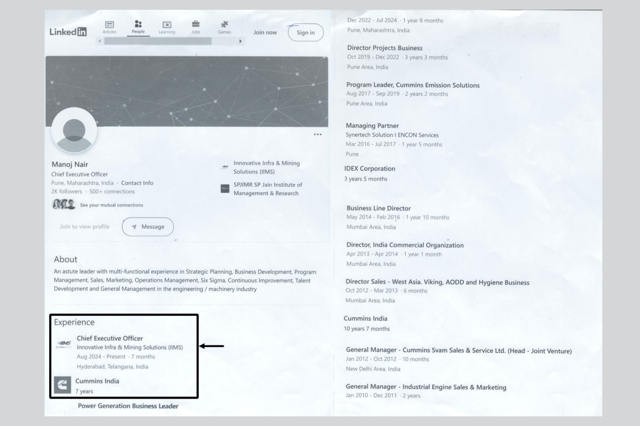 އެކަން އިތުރަށް ބެލުމަށްޓަކައި، އެ ލިޔުމުގައި ސޮއިކޮށްފައިވާ މަނޯޖްއަކީ ކާކުކަން ކަށަވަރު ކުރުމަށް އަދަދު އިން ކުރި މަސައްކަތުން އެނގުނު ގޮތުގައި އޯގަސްޓު 2024 އިން ފެށިގެން މަނޯޖް މަސައްކަތް ކުރަމުން އަންނަނީ އިނޮވޭޓިވް އިންފްރާ އެންޑް މައިނިން ސޮލިއުޝަންސް ކިޔާ އިންޑިއާ ކުންފުންޏެއްގެ ސީއީއޯގެ މަގާމުގަ އެވެ. އެހެންކަމުން މި އަހަރުގެ ޖެނުއަރީ 1، ގައި ކަމިންސްއިން ޕަވަރިކާއަށް ދިން ލިޔުމެއްގައި އޭނާގެ ސޮއި ނޯންނާނެކަން ކަށަވަރުވެ އެވެ.