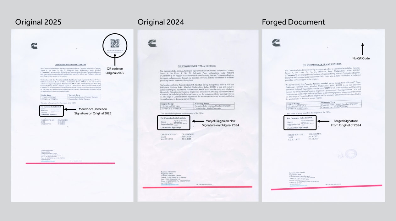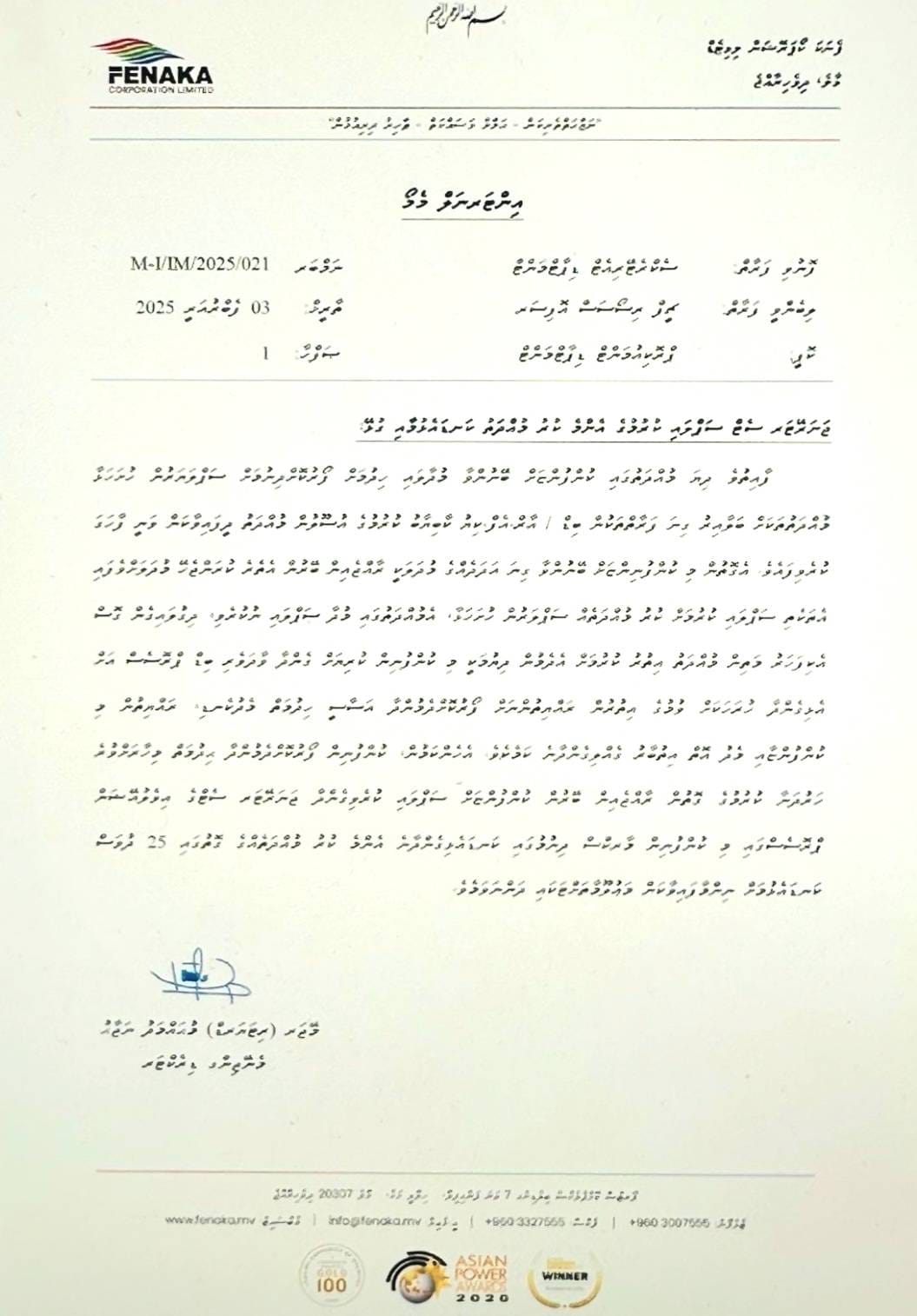 ކަމިންސް ކުންފުނިން ޖެނުއަރީ 1، 2025 ގައި ޕަވަރިކާއަށް ދިން ލިޔުން ކަމަށް ބުނެ، ޖާމިނަލް އިން ފެނަކައަށް ހުށަހަޅާފައިވާ ލިޔުމުގައި ސޮއިކޮށްފައި ވަނީ މަނޯޖް ރާޖްގޮޕަލަން ކިޔާ މީހެކެވެ. އެ ލިޔުމުގައި ބޭނުން ކޮށްފައި ވަނީ ޑިޖިޓަލް ސޮޔެކެވެ. އެ ލިޔުމުގެ ވެލިޑިޓީ ތާރީހެއްގެ ގޮތުގައި ދީފައިވަނީ ޑިސެމްބަރު 31، 2025 އެވެ.