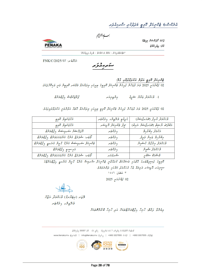 އެ ބައްދަލުވުމުގައި ނިންމި ގޮތަށް އަލްފާ އެނާޖީ ސޮލިއުޝަންސް އާއި އެނާޖިއާ ކޮންސަލްޓިންއަށް އެވާޑުކުރި ޖެންސެޓުތައް އެވާޑު ކުރުމަށް، އެގްރީމެންޓު ތައްޔާރުކޮށް އެ ކުންފުނިތަކަށް ފެބްރުއަރީ 10، 2025 ގައި ފެނަކައިން ހިއްސާކުރި އެވެ.