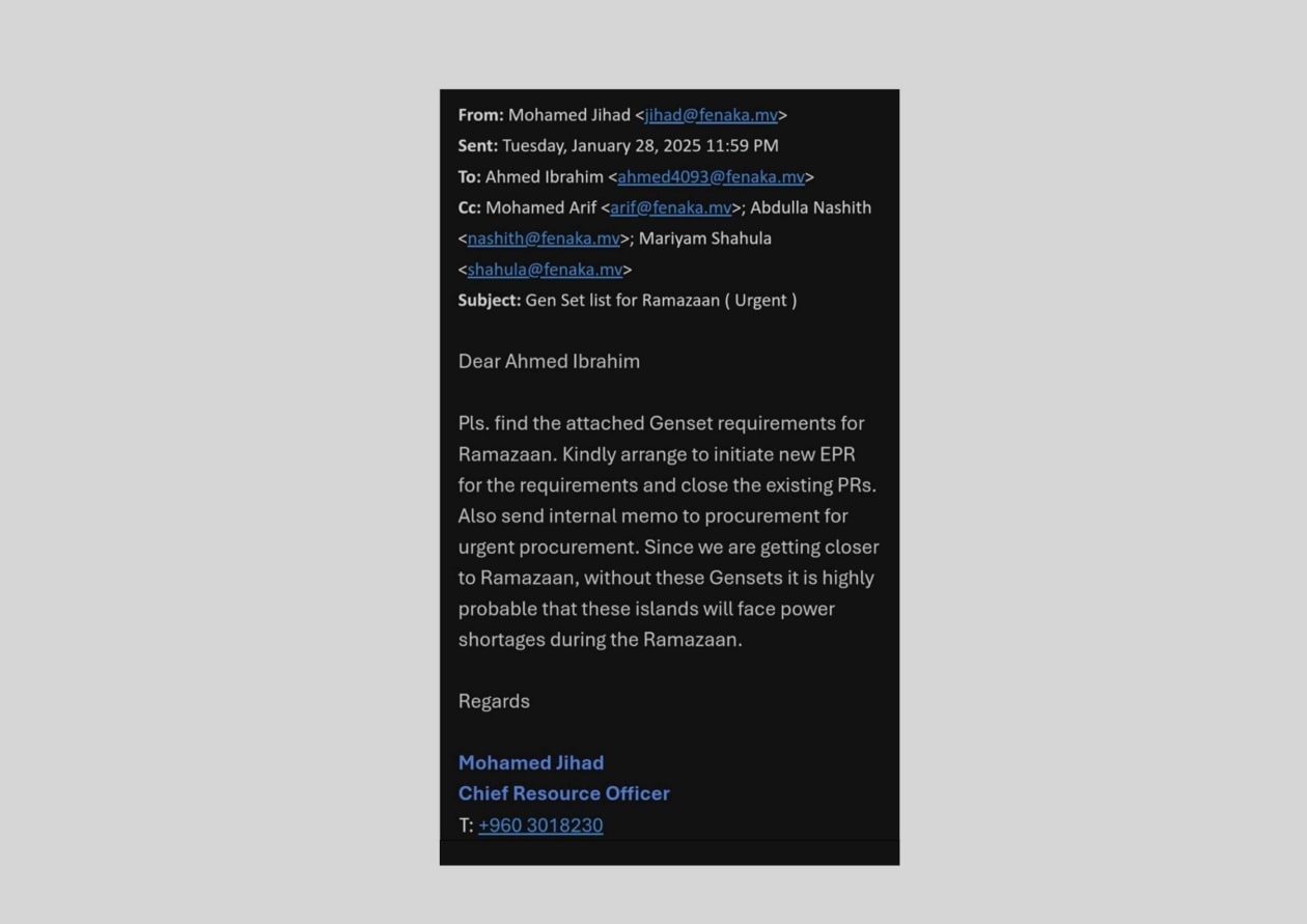 ރޯދަމަހު ކަނުއަނދިރީގައި ތިބެންޖެހުމުގެ ހަގީގަތް: ބޮޑު އަގުގައި ފެނަކައަށް ބާ ޖެނެރޭޓަރުތަކެއް ގަތުމުގެ ހިޔާނާތް!