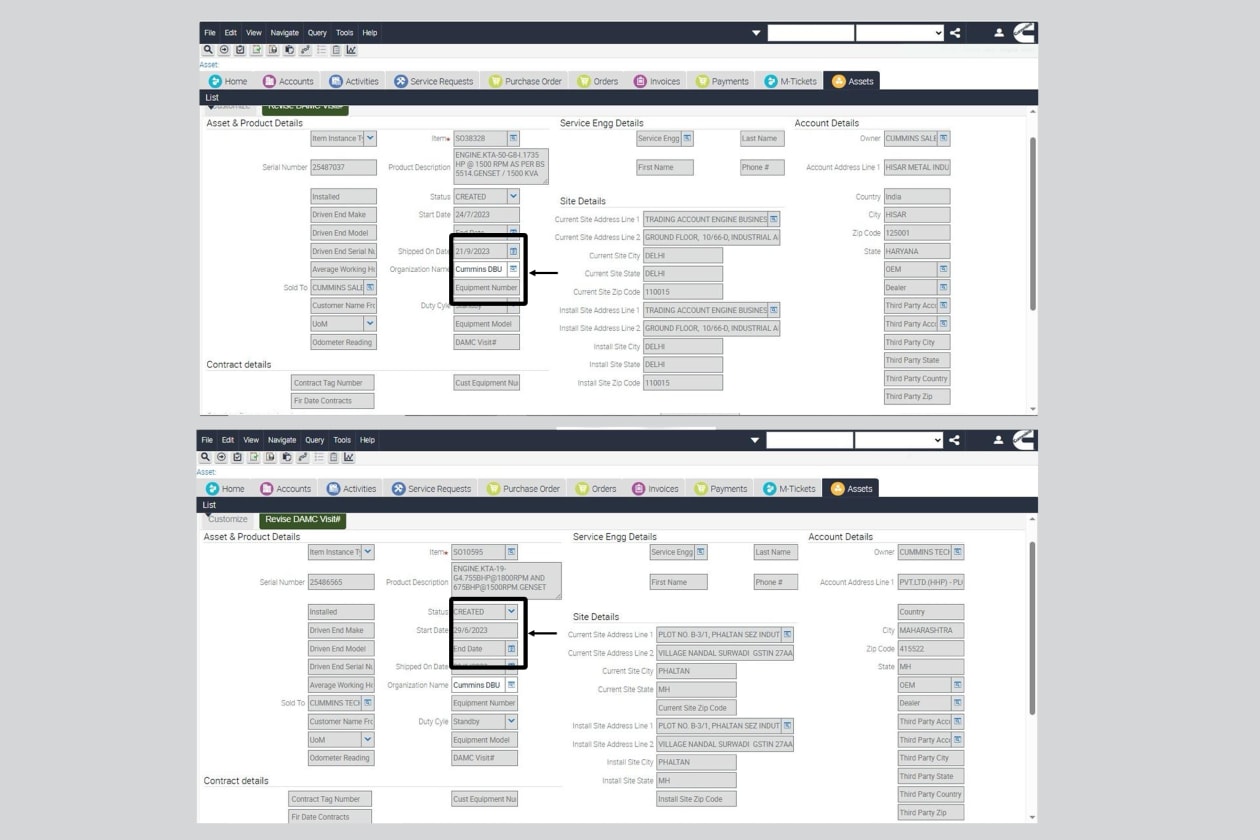 އިންޑިއާގެ ކަމިންސް ކުންފުނިން ތައްޔާރުކުރާ ހުރިހާ ޖެނެރޭޓަރެއްގެ މައުލޫމާތު ވެސް އެ ކުންފުނީގެ ވެބްސައިޓުގައި ޝާއިއު ކޮށްފައި ހުރެ އެވެ. އެގޮތުން ކޮންމެ ޖެންސެޓެއްގެ ވެސް ސީރިއަލް ނަންބަރު، އެ ވެބްސައިޓުގައި ޖެހުމުން، އެ ޖެންސެޓު ފުރަތަމަ ބޭނުން ކުރަން ފެށި (ސްޓާޓް ޑޭޓް) ތާރީހާއި ޖެންސެޓު ޝިޕް ކުރި ތާރީހު ފެންނާނެ ހުރެ އެވެ.