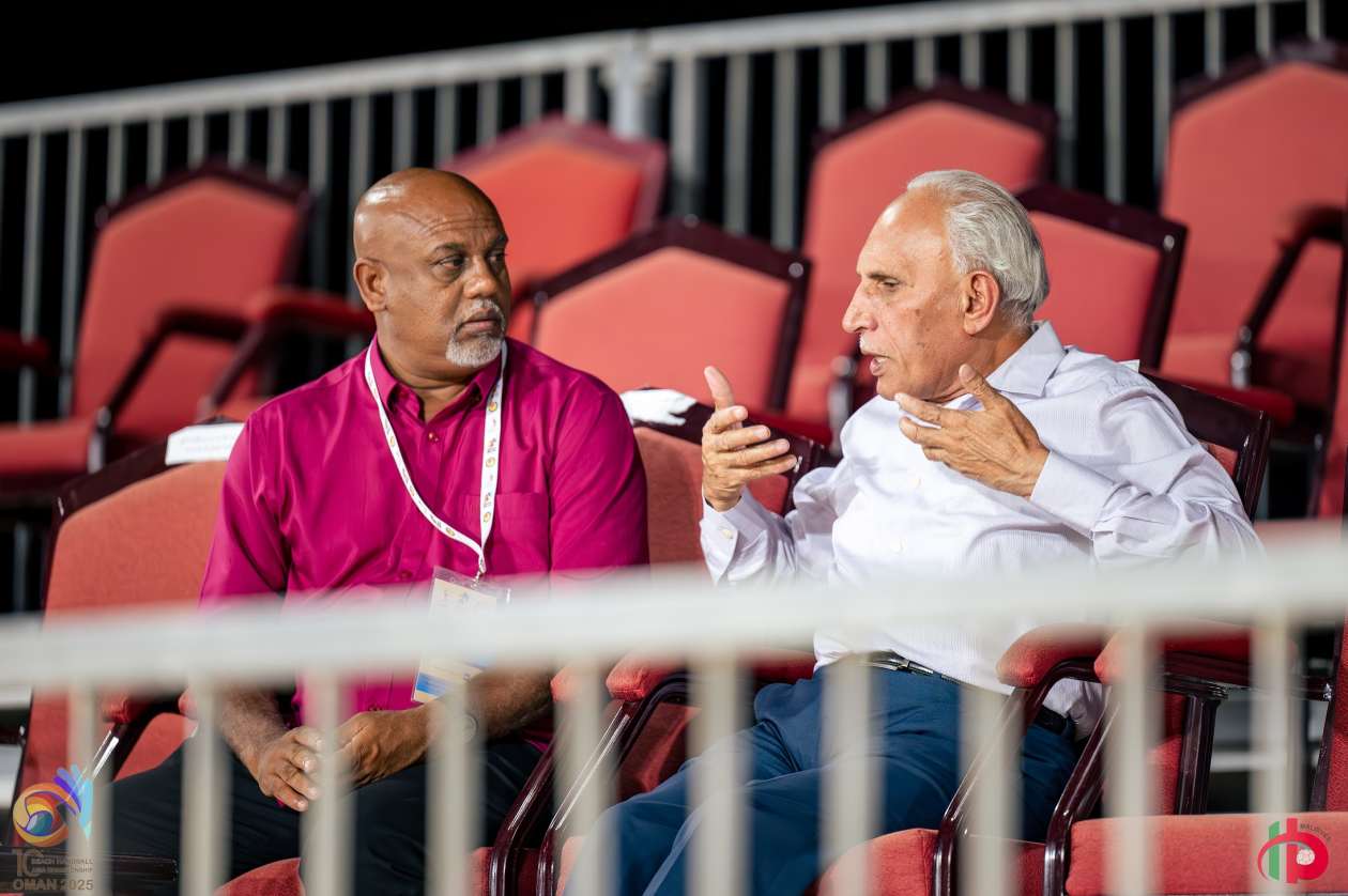 އޭޝިއަން ހޭންޑްބޯޅަ ފެޑެރޭޝަންގެ ޖެނެރަލް ސެކްރެޓަރީ، މުހައްމަދު ޝަފީގު (ކ) އާއި އޭޝިއާ ހޭންޑްބޯޅަ މުބާރާތުގެ ތެރެއިން މުޖޭ (ވ).--- ފޮޓޯ: ނަވާޒް އައްސަދު / ހޭންޑްބޯލް މޯލްޑިވްސް