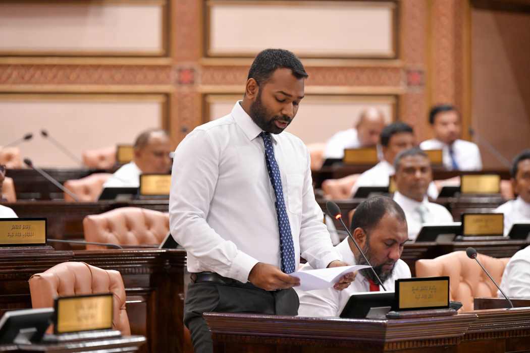 ރައްޔިތުންގެ މަޖިލީހުގެ ގަލޮޅު ދެކުުނު ދާއިރާގެ މެންބަރު މީކާއިލް ނަސީމް މަޖިލީހުގެ ޖަލްސާއެއްގައި: އޭނާ ހުށަހެޅުއްވި ގަރާރުގައި ވަނީ ހަނގުރާމަ ދިގުލައިގެންދާ ހާލަތުގައި ރާއްޖެއަށް އަސަރުކުރާނެ ކަމަށް ބަޔާންކުރައްވާފައި --- ފޮޓޯ: ރައްޔިތުންގެ މަޖިލިސް