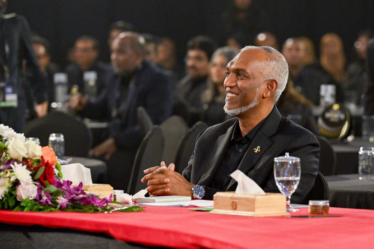 މޯލްޑިވްސް ސްޕޯޓްސް އެވޯޑްސް ހަފްލާގެ ތެރެއިން ރައީސް ޑރ، މުހައްމަދު މުއިއްޒު.---- ފޮޓޯ: ރައީސް އޮފީސް