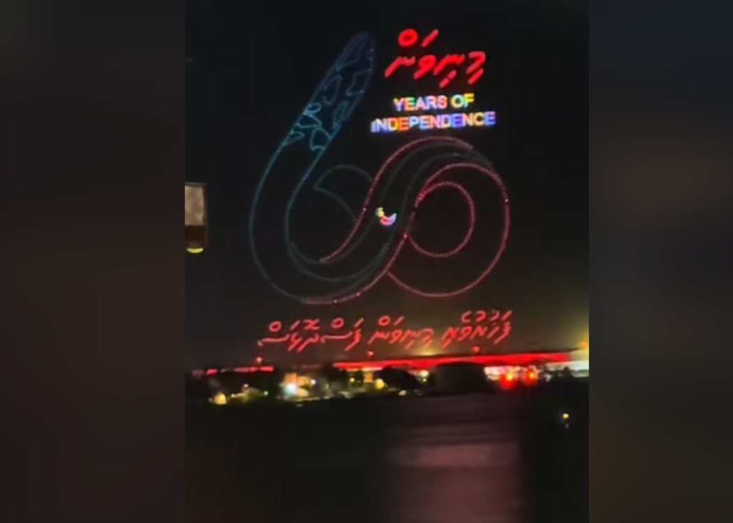ދިވެހިރާއްޖޭގެ މިނިވަން ކަމަށް 60 އަހަރު ފުރުމުގެ މުނާސަބަތާ ގުޅުވައިގެން، ވެލާނާ އިންޓަނޭޝަނަލް އެއާޕޯޓުގެ އާ ޓާމިނަލް ހުޅުވަން ރޭ ބޭއްވި ރަސްމިއްޔާތުގައި ކުރިއަށް ގެންދިޔަ ޑްރޯން ޝޯގައި "މިނިވަން 60"ގެ ލޯގޯ ނުދެއްކުނެވެ.