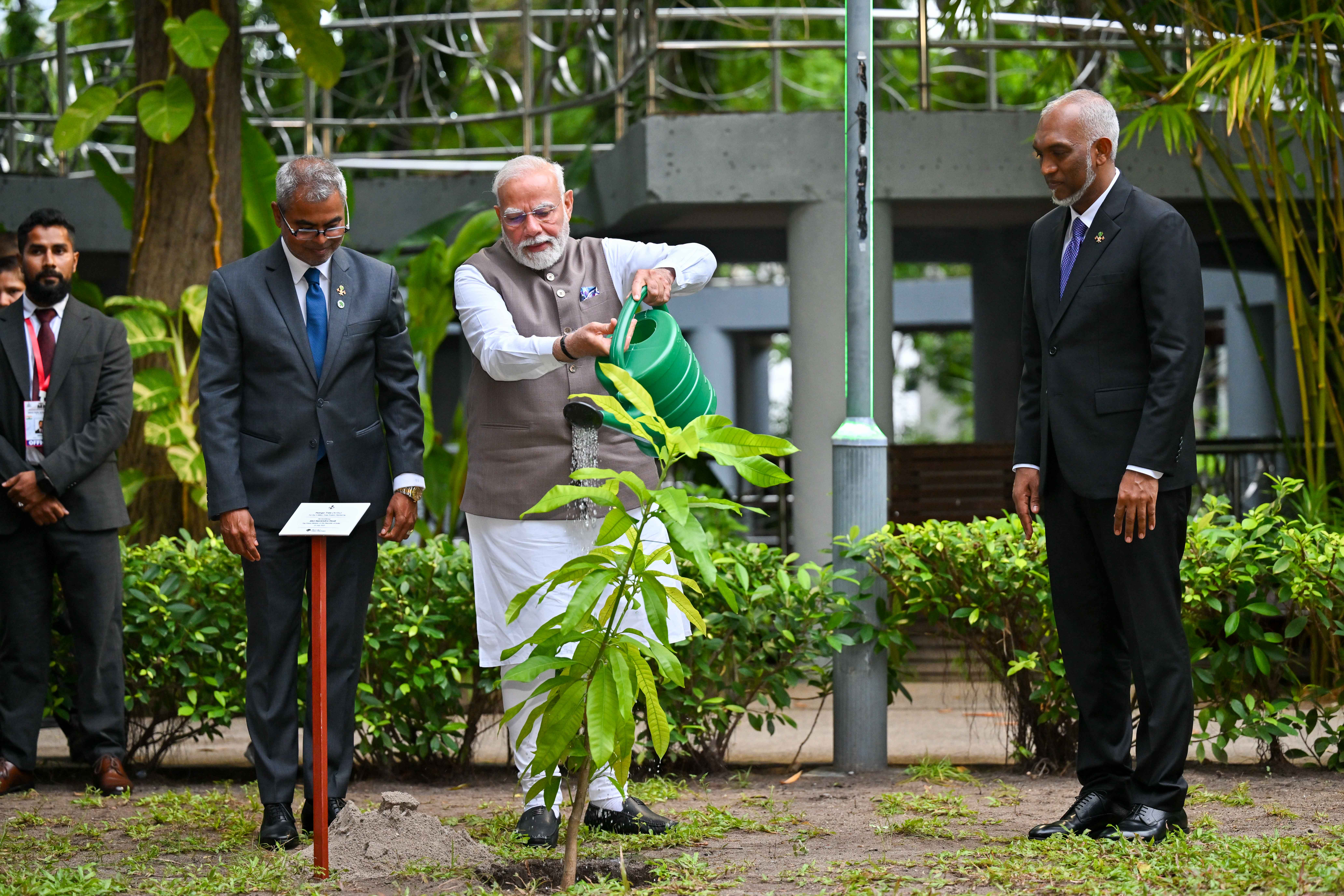 ރައީސް އޮފީހުގައި ބޭއްވި ރަސްމީ ހަރަކާތްތައް ނިންމައިލެއްވުމަށްފަހު މުއިއްޒާއެކު މޯދީ ވަޑައިގެންނެވީ ސަލްޓަން ޕާކަށެވެ. ޕާކުގައި މޯދީ ވަނީ ކިނބި ގަހެއް އިންދަވައިފަ އެވެ. މުއިއްޒު ވެސް ސަލްޓަން ޕާކުގައި ކިނބި ގަހެއް އިންދެވި އެވެ.
