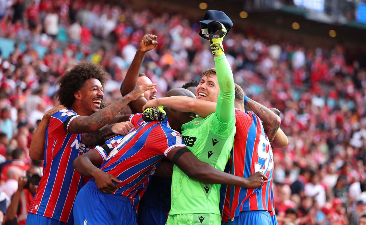 ޕެނަލްޓީ ޖަހައިގެން މޮޅުވުމަށް ފަހު ޕެލަސްގެ ކުޅުންތެރިން އެ ޓީމުގެ ކީޕަރު، ހެންޑަސަންއާ އެކު އުފާފާޅުކުރަނީ.،